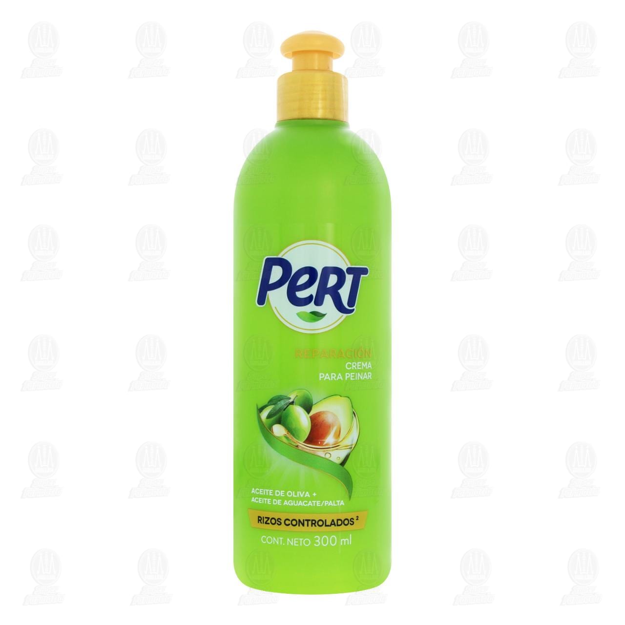 Crema para Peinar Pert Reparación con Aceite de Oliva más Aceite de Aguacate/Palta, Rizos Controlados. Envase con 300 mililitros.