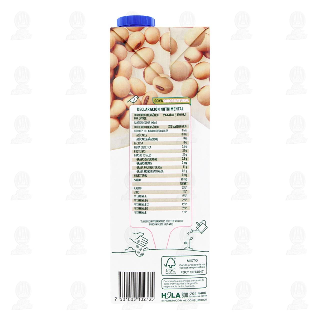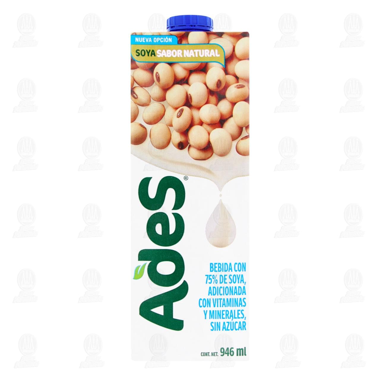 Bebida Ades con 75% de Soya, Adicionada con Vitaminas y Minerales, Sin Azúcar. Envase de 946 mililitros.