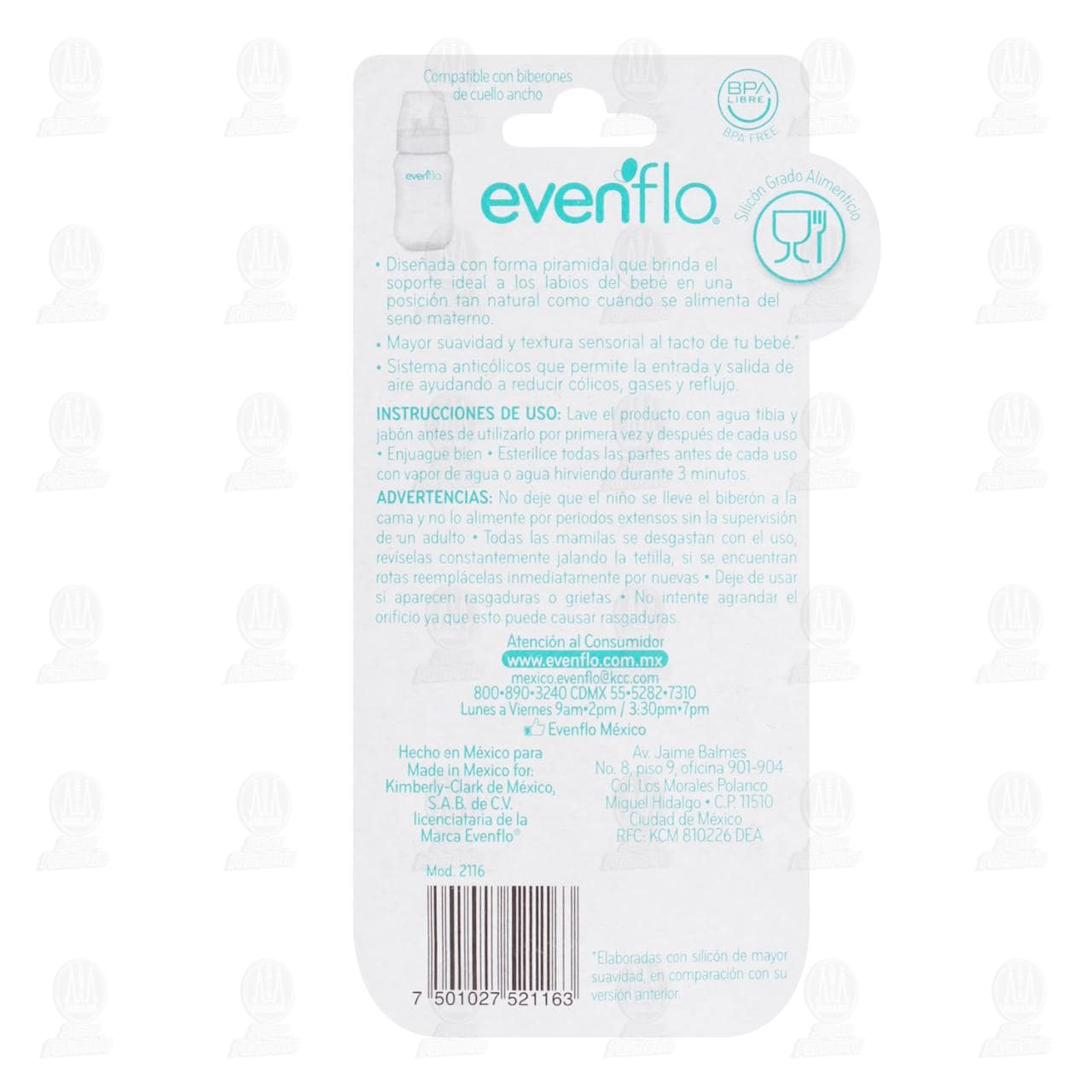 Mamilas Evenflo Cuello Ancho de Flujo Medio, 2 pzas.