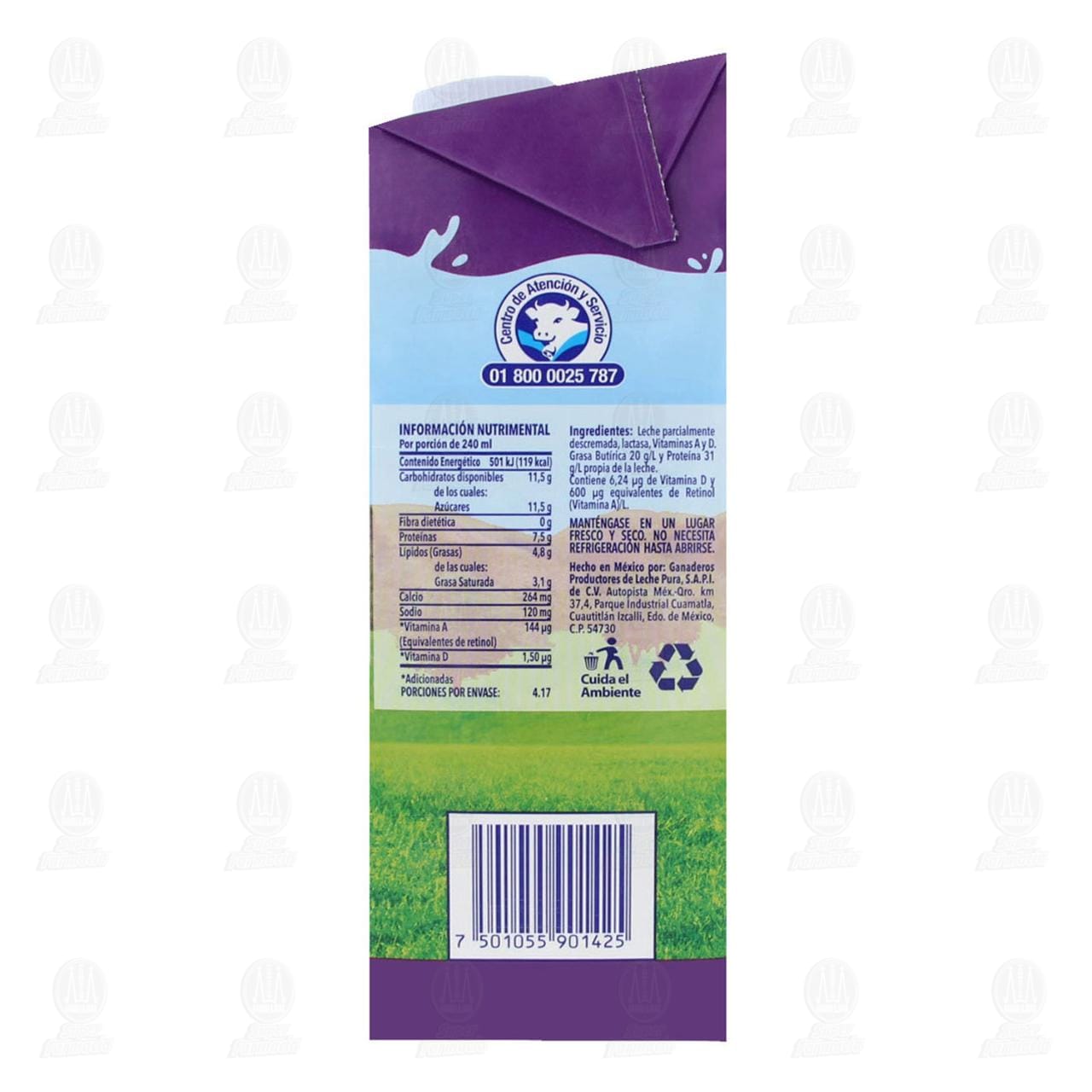 Leche deslactosada Alpura parcialmente descremada, ultrapasteurizada, adicionada con vitaminas A y D. Envase de 1 litro.