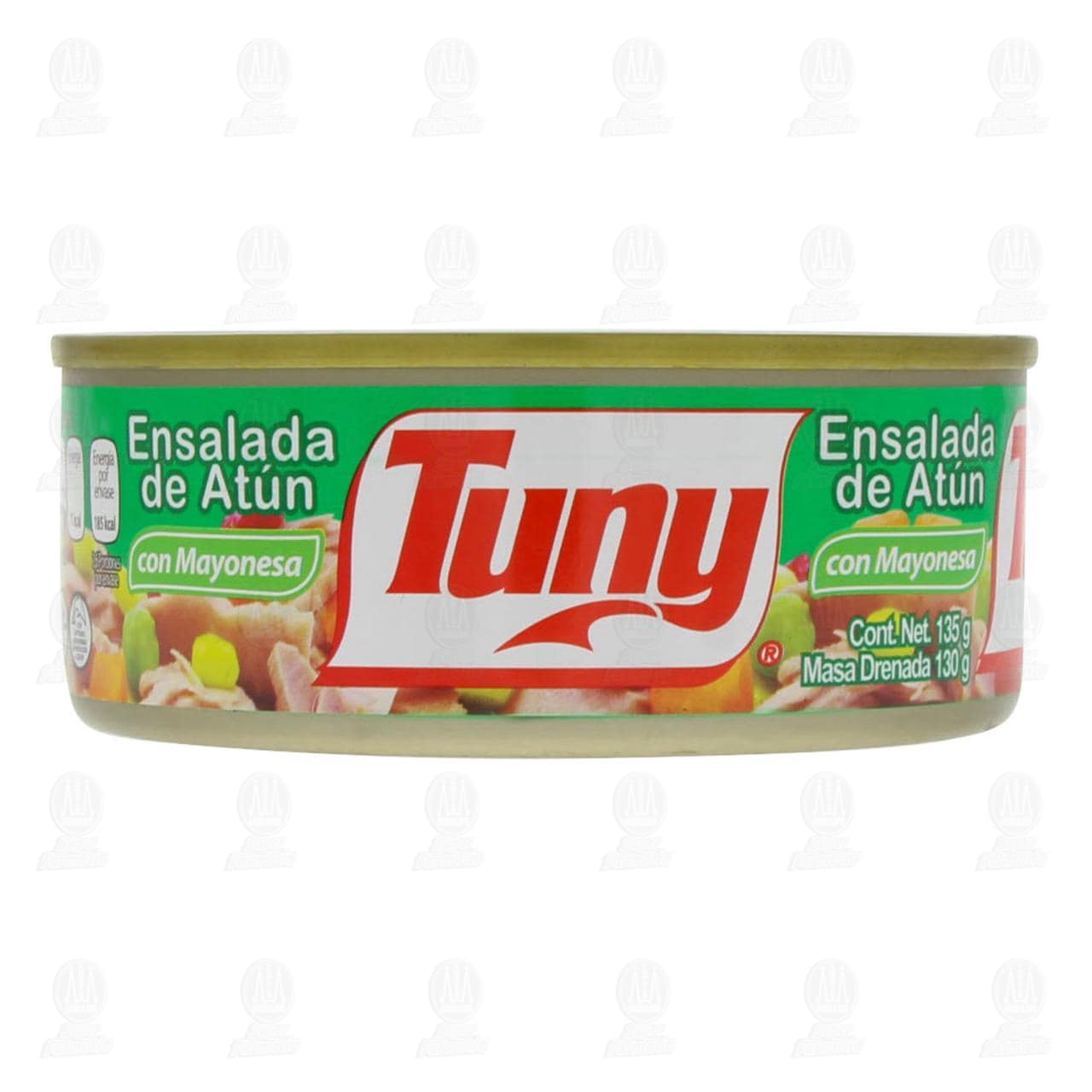 Alimento enlatado Tuny, ensalada de atún con mayonesa. Lata con 135 gramos, masa drenada 130 gramos.
