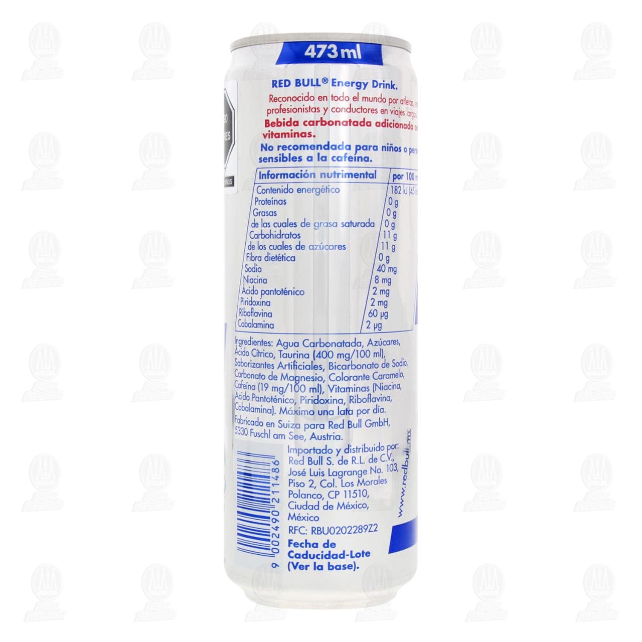Bebida energética carbonatada Red Bull Energy Drink adicionada con vitaminas. Lata con 473 mililitros.