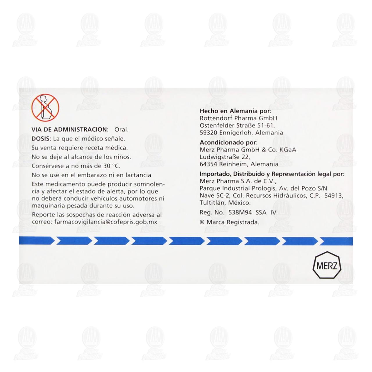 No se deje al alcance de los niños. Su venta requiere receta médica. No se use en el embarazo ni en lactancia. Este medicamento puede producir somnolencia y afectar el estado de alerta, por lo que no deberá conducir vehículos automotores ni maquinaria pesada durante su uso.