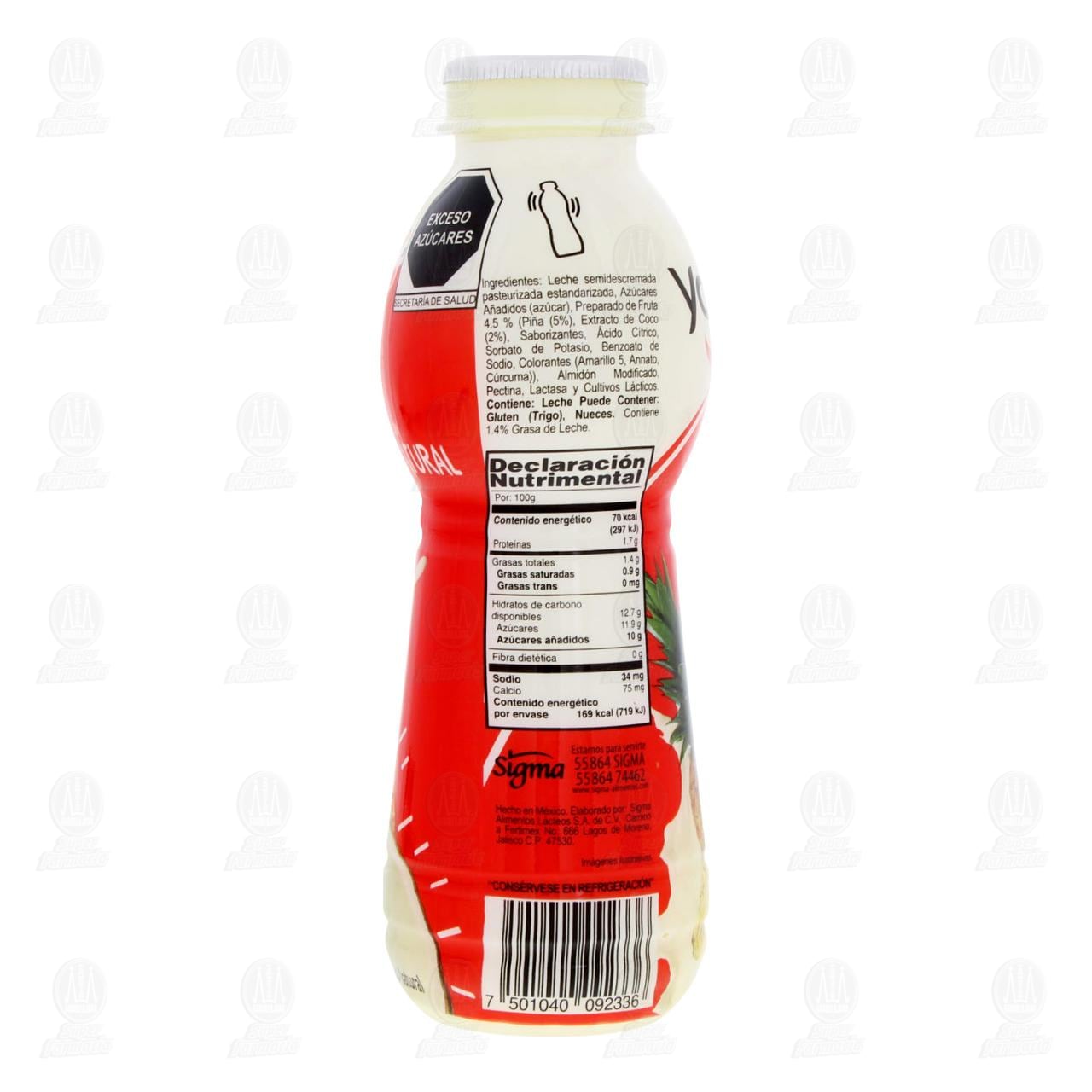 Yoghurt para beber Yoplait con piña-coco natural. Envase con 242 gramos.