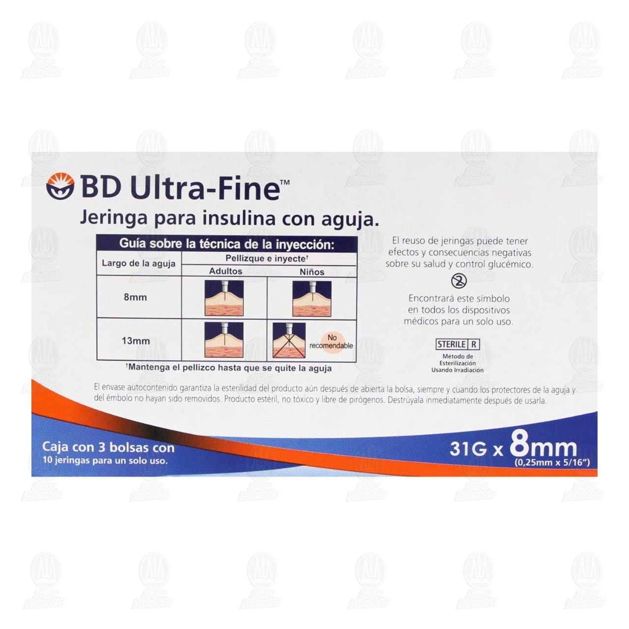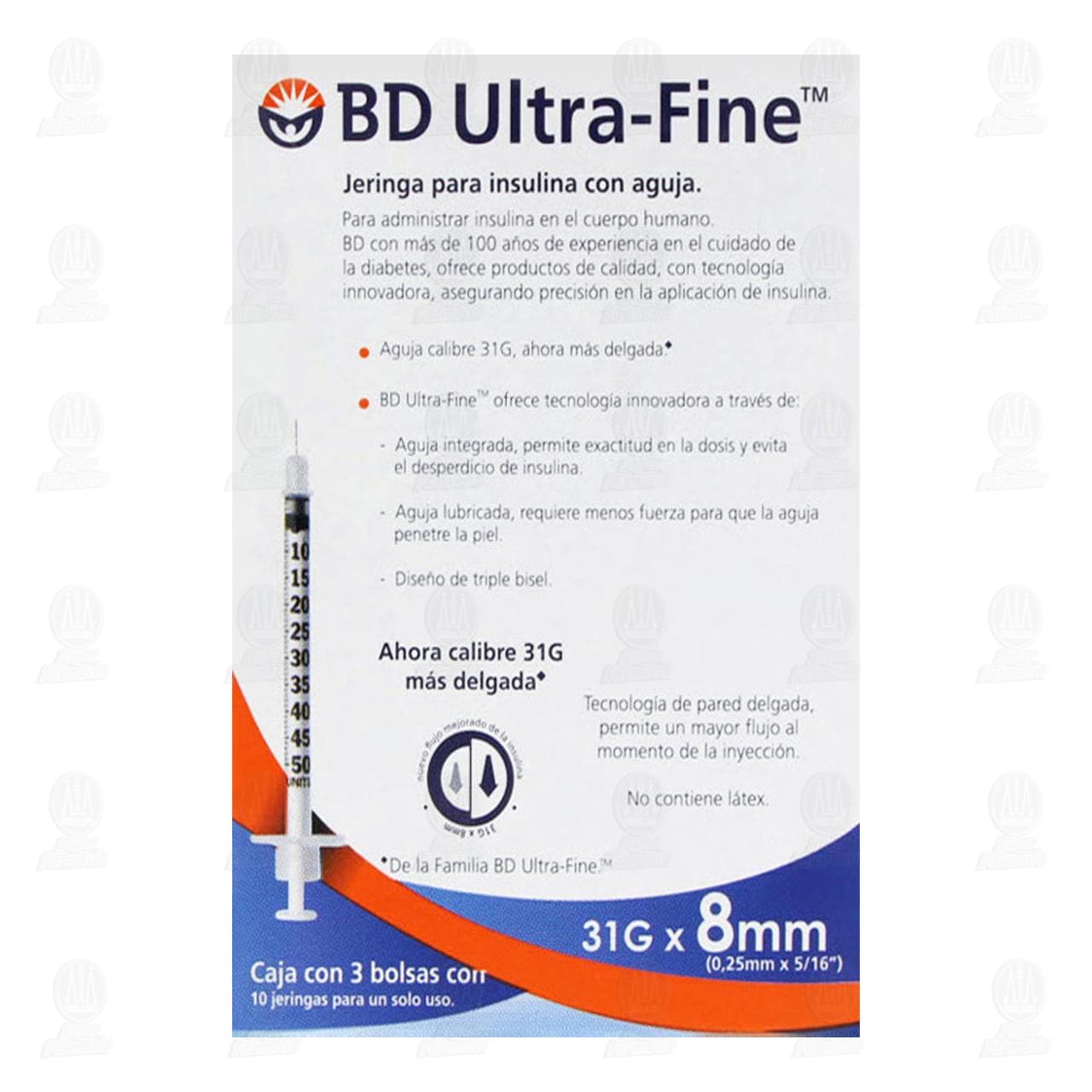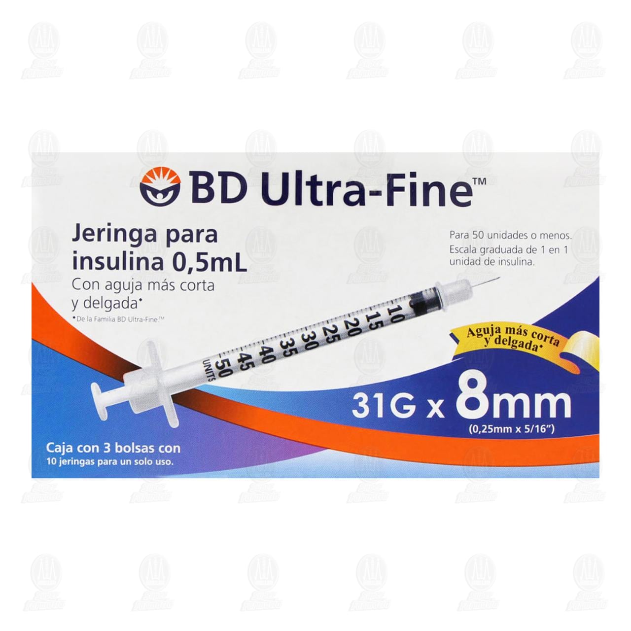 Jeringas para Insulina Ultra-Fine 0.5ml 31G x 8mm. Caja con 30 piezas.