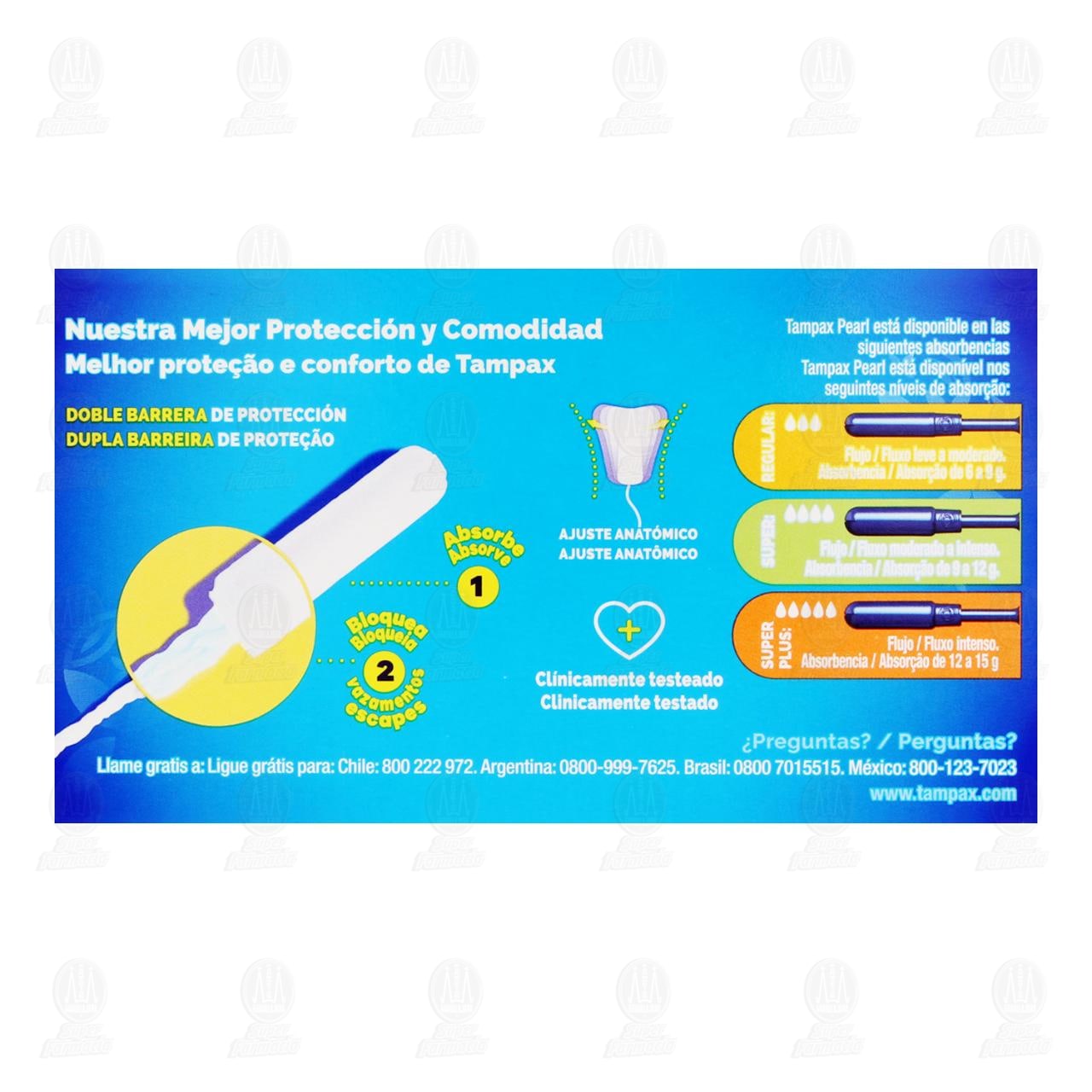 Tampón Tampax Pearl de Súper Absorbencia, Su diseño anatómico se mueve contigo para que no lo sientas y cuenta con una cubierta extra suave para que al quitarlo sea cómodo y fácil. Paquete con 8 piezas.