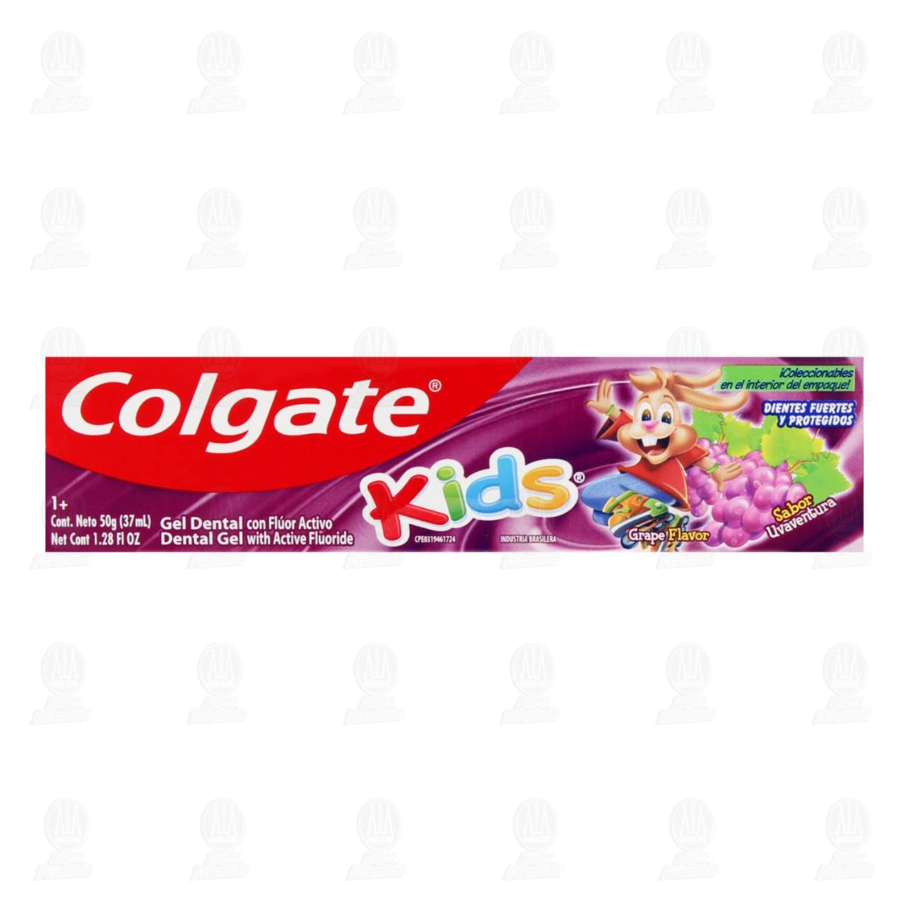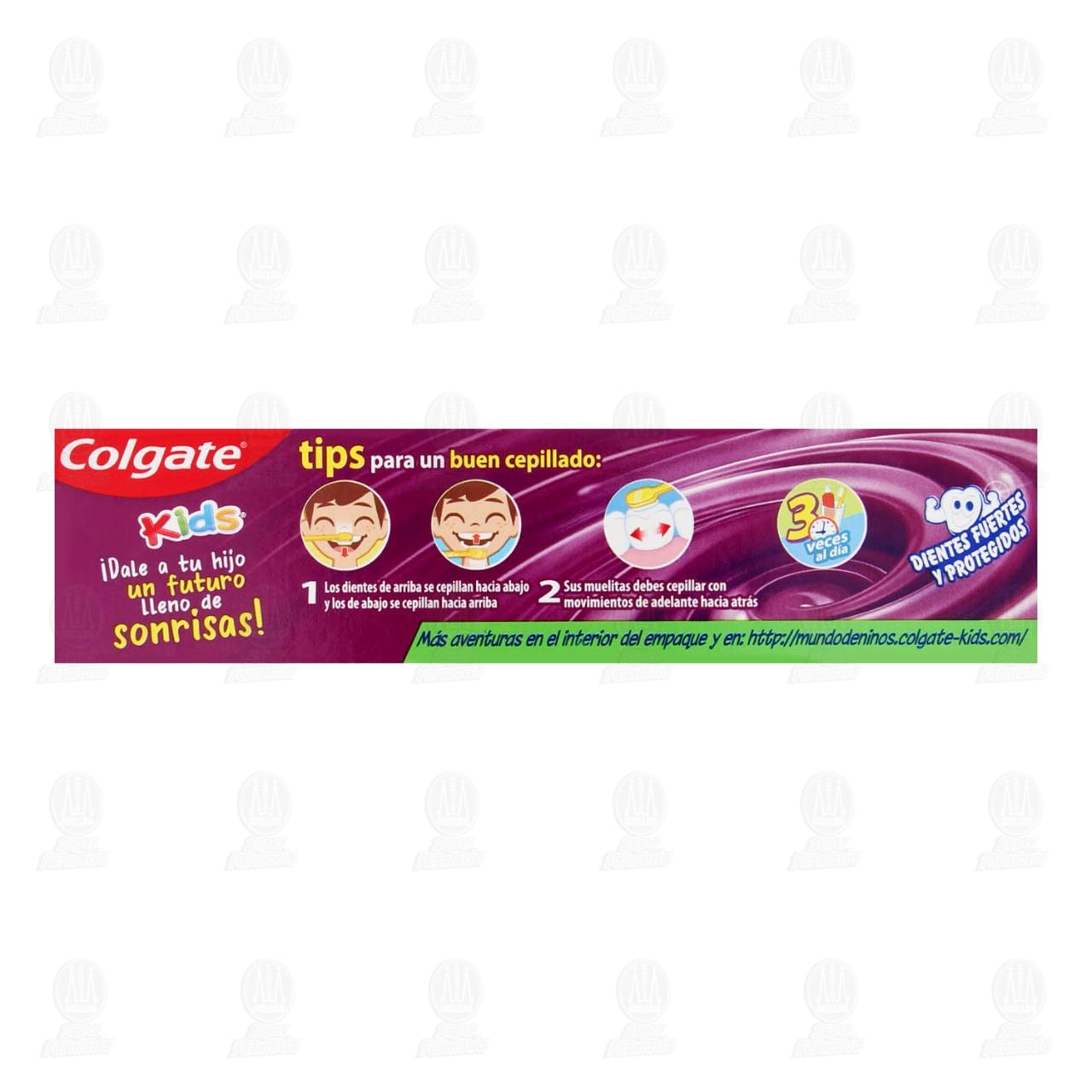 Pasta Dental Colgate Kids con flúor, sabor uvaventura para niños. Contiene 50 gramos.