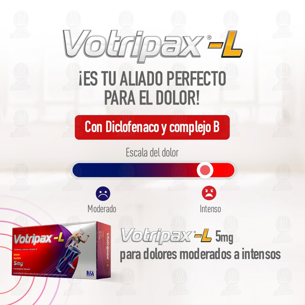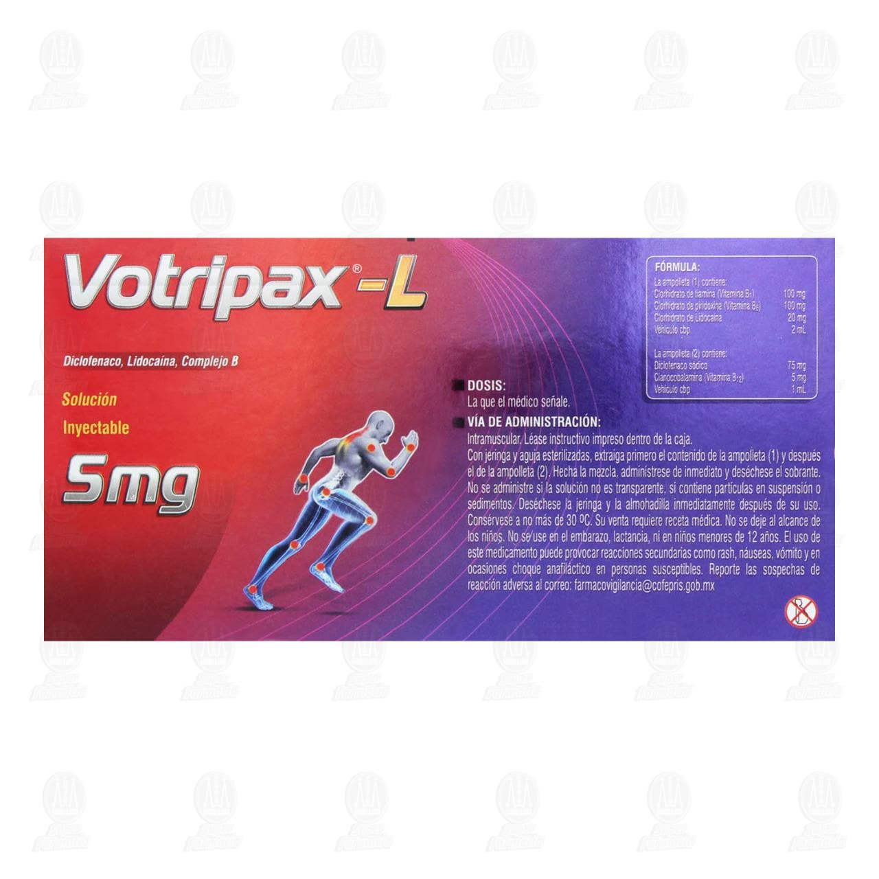 Votripax-L 5mg Solución Inyectable 1 Ampolleta, 1 Jeringa y 1 Almohadilla con Alcohol (Diclofenaco, Lidocaína, Complejo B)