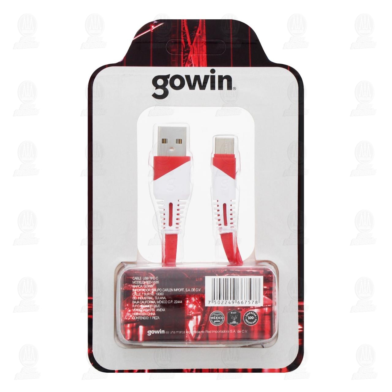 Cable USB tipo C Gowin, capacidad 2100 mAh, longitud de 1 metro, carga y sincroniza, modelo RED-1536. Contiene 1 pieza.
