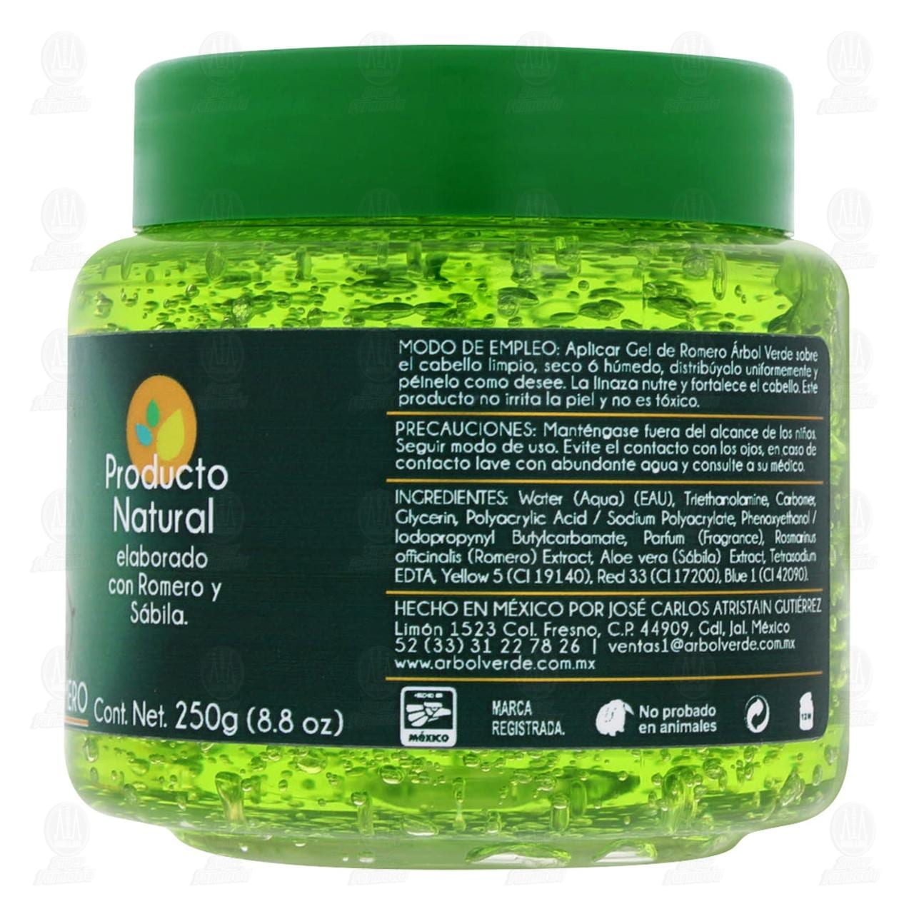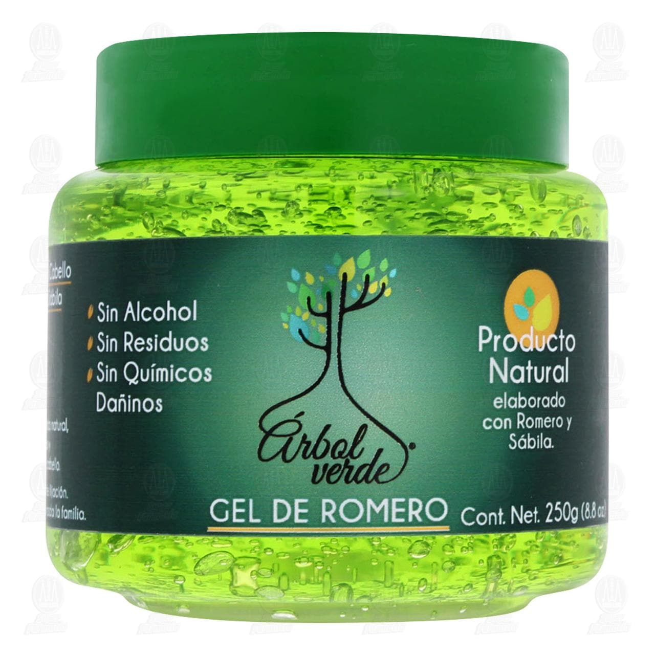 Gel fijador para cabello Árbol Verde elaborado con romero y sábila, larga duración y fuerte fijación, cabello firme y sano para toda la familia. envase con 250 gramos.