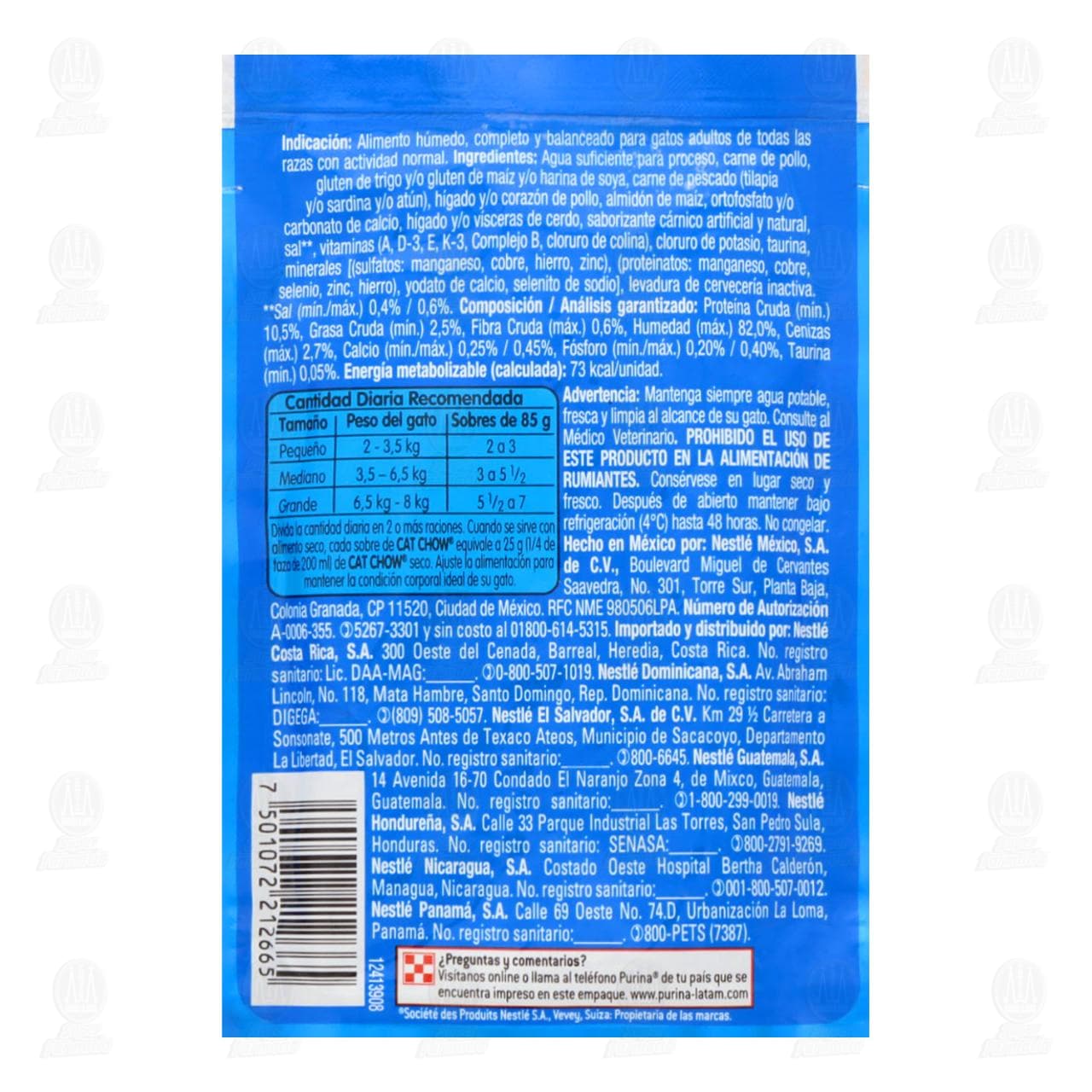 Alimento húmedo Purina Cat Chow pescado para gatos adultos de todas las razas, 100% completo y balanceado, ayuda a proteger la salud y contribuye a un tracto urinario saludable. Sobre con 85 gramos.