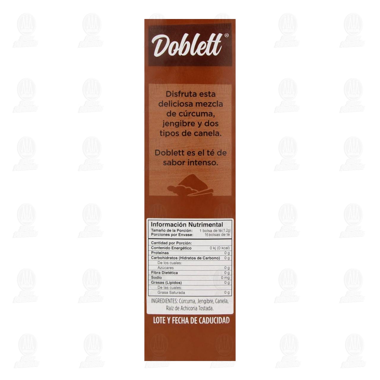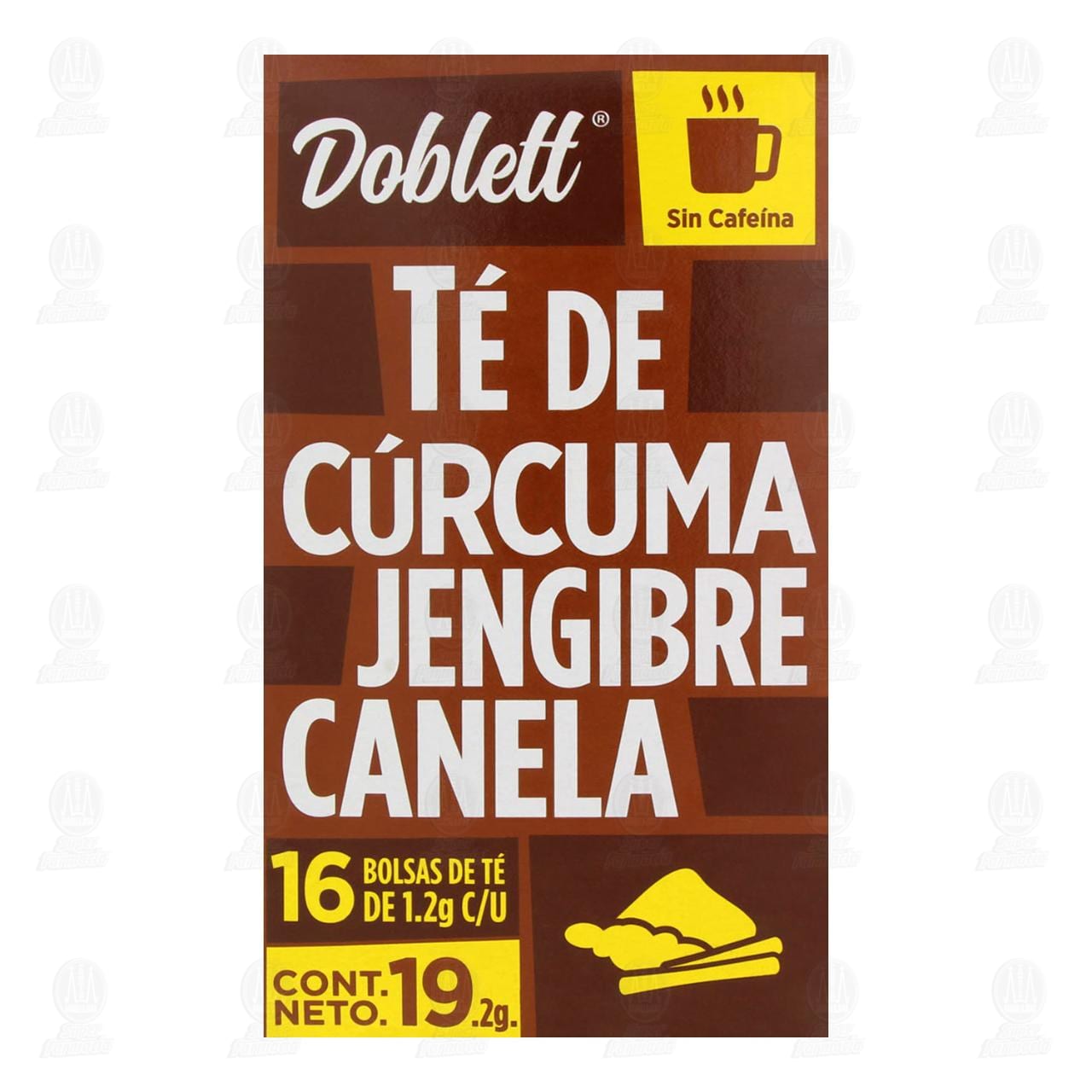 Té Doblett deliciosa mezcla de cúrcuma, jengibre y dos tipos de canela. Caja de 19.2 gramos con 16 bolsas (cada una de 1.2 gramos).