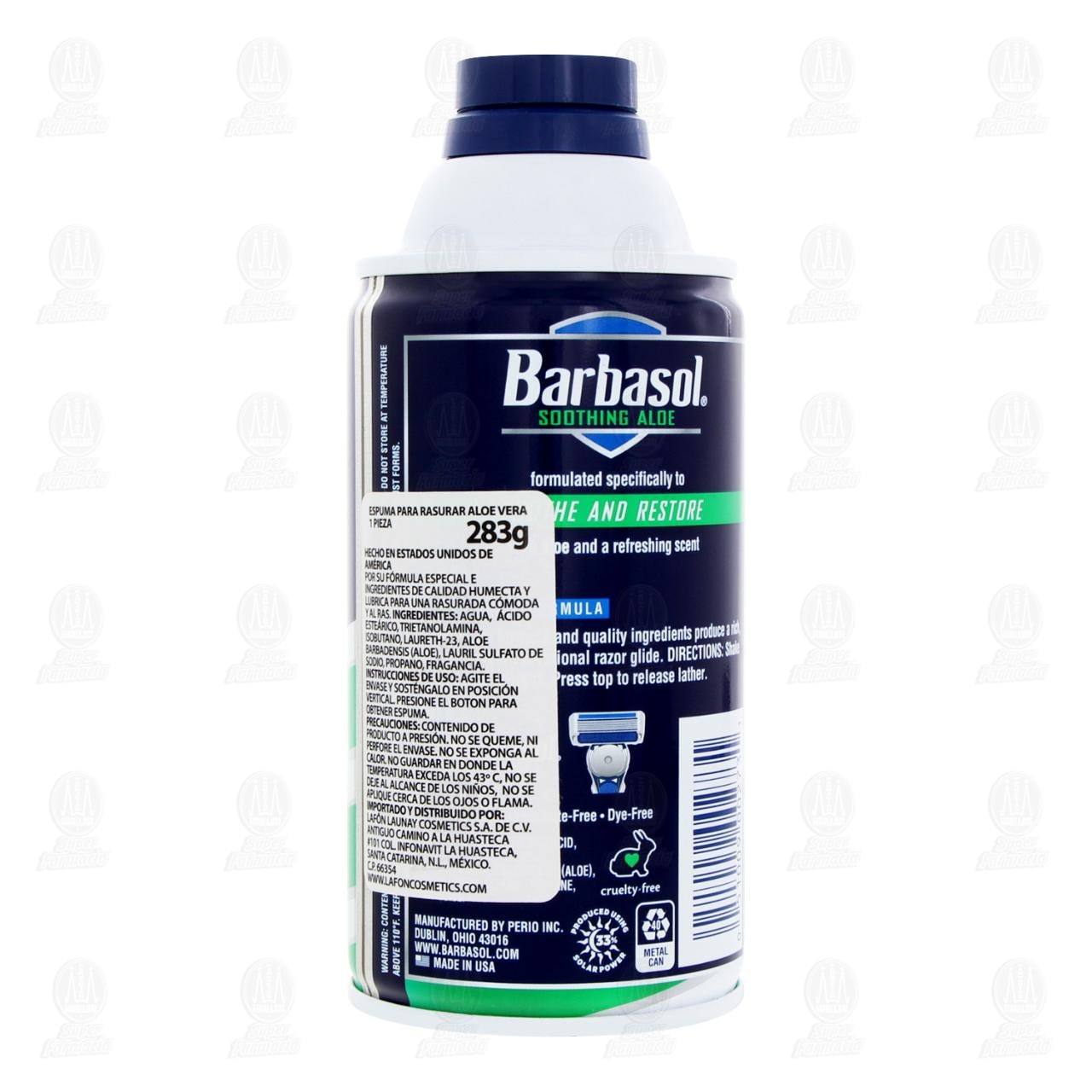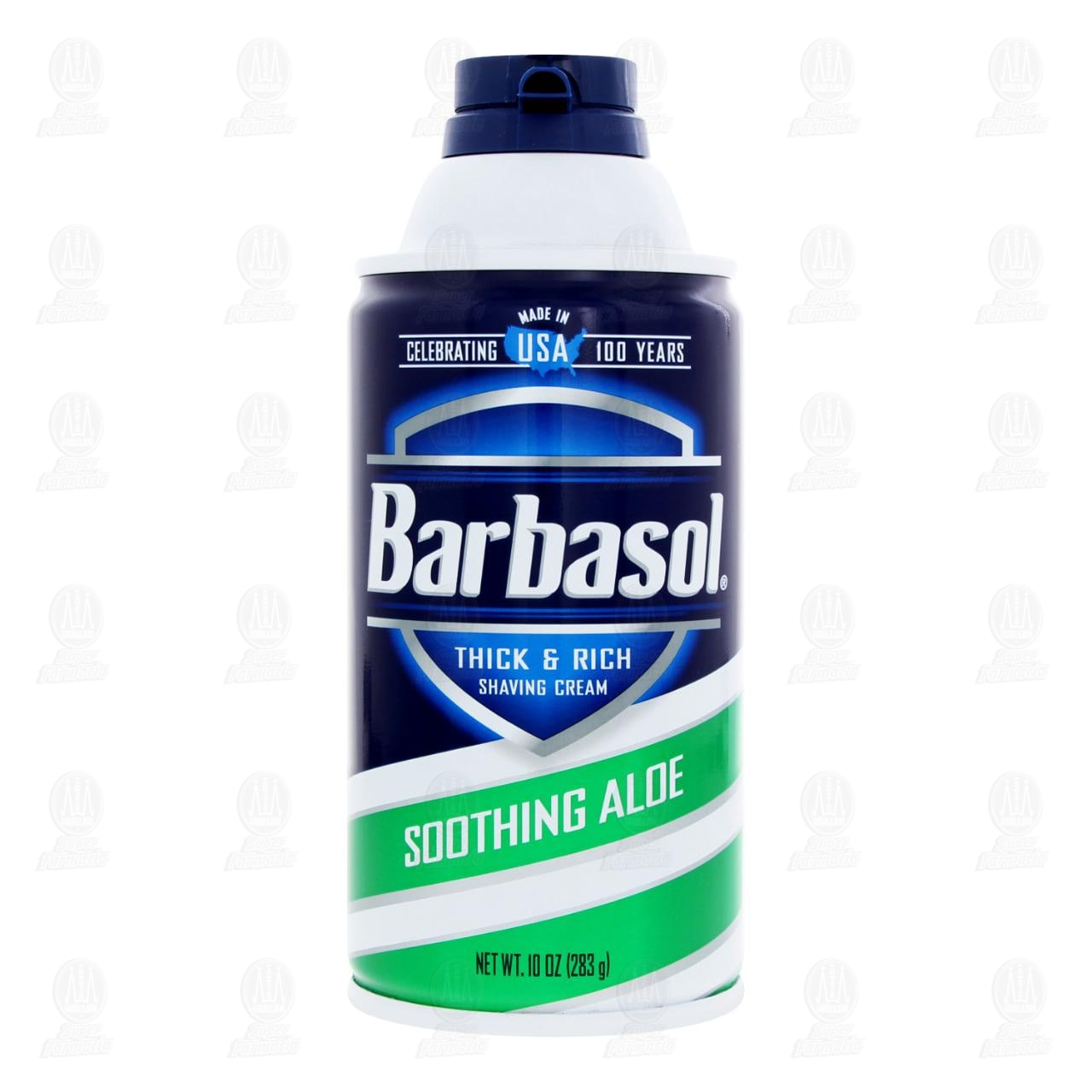 Espuma para Rasurar Barbasol con Aloe vera, para una rasurada cómoda y al ras. Envase con 283 gramos.