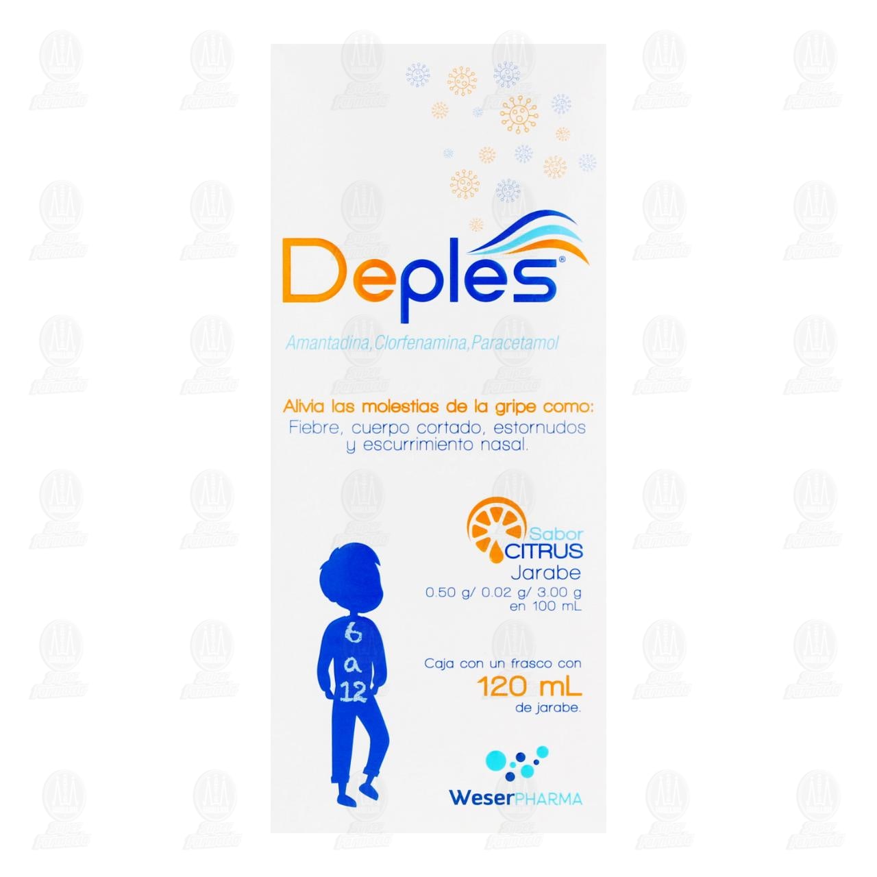 Deples Escolar Jarabe 0.50/0.02/3.00gr, Frasco con 120 mililitros (Amantadina, Clorfenamina, Paracetamol)