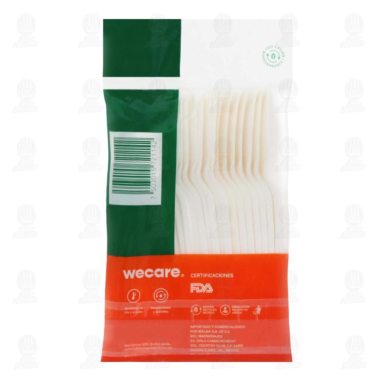 Cucharas desechables Wecare, tamaño mediana, hechas de fécula de maíz y 100% biodegradables. Contiene 20 piezas.