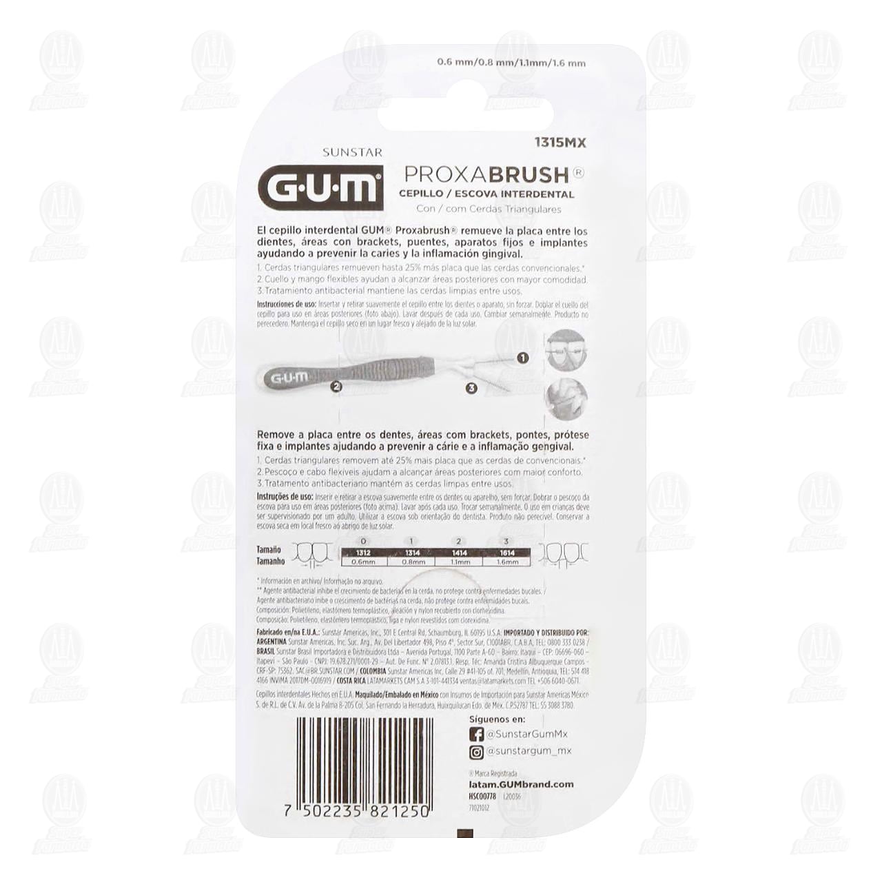 Cepillo interdental Sunstar Gum Proxabrush, diferentes tamaños, remueve la placa entre los dientes, áreas con brackets, puentes, aparatos fijos e implantes, ayudando a prevenir la caries y la inflamación gingival. Contiene 10 piezas.