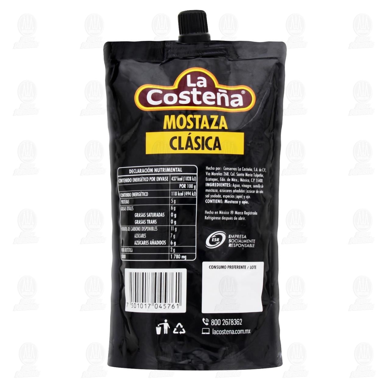 Mostaza La Costeña Clásica Flexipack. Contiene 370 gramos.