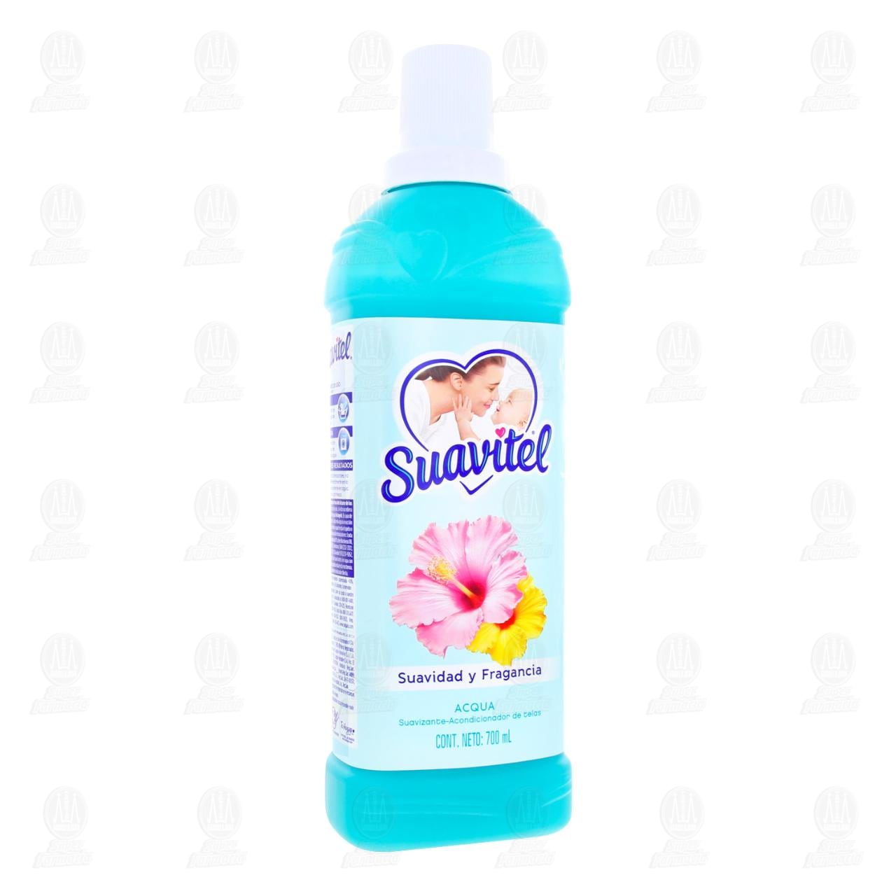Suavizante-Acondicionador de Telas Suavitel Suavidad y Fragancia Aroma Acqua. Envase con 700 mililitros.