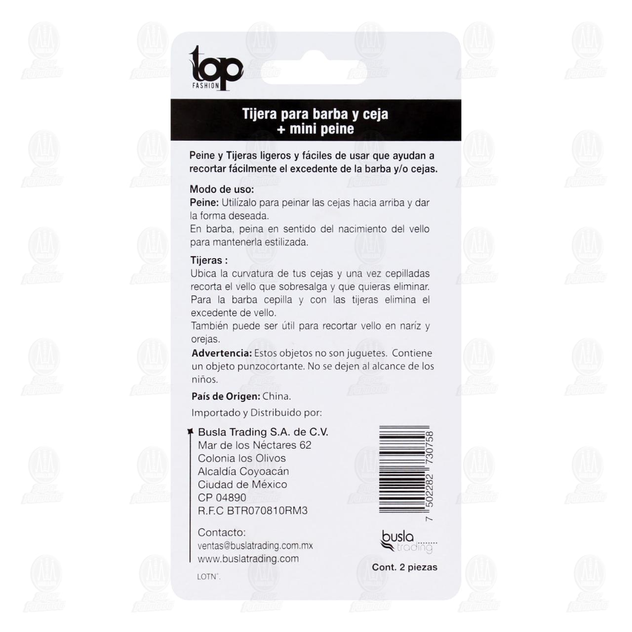 Combo Especial Top Fashion Tijera para Barba y Ceja + Mini Peine. Contiene 2 piezas: 1 Tijera para Barba y Ceja + 1 Mini Peine.