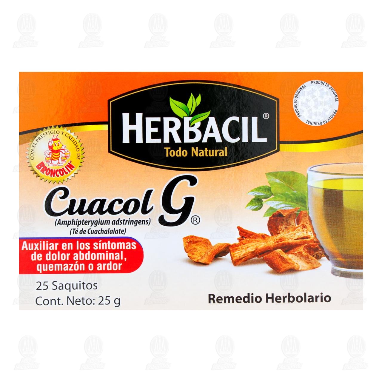 Herbacil Cuacol G Remedio Herbolario Té de Cuachalalate. Auxiliar en los Síntomas de Dolor Abdominal, Quemazón o Ardor. Caja con 25 gramos con 25 saquitos..