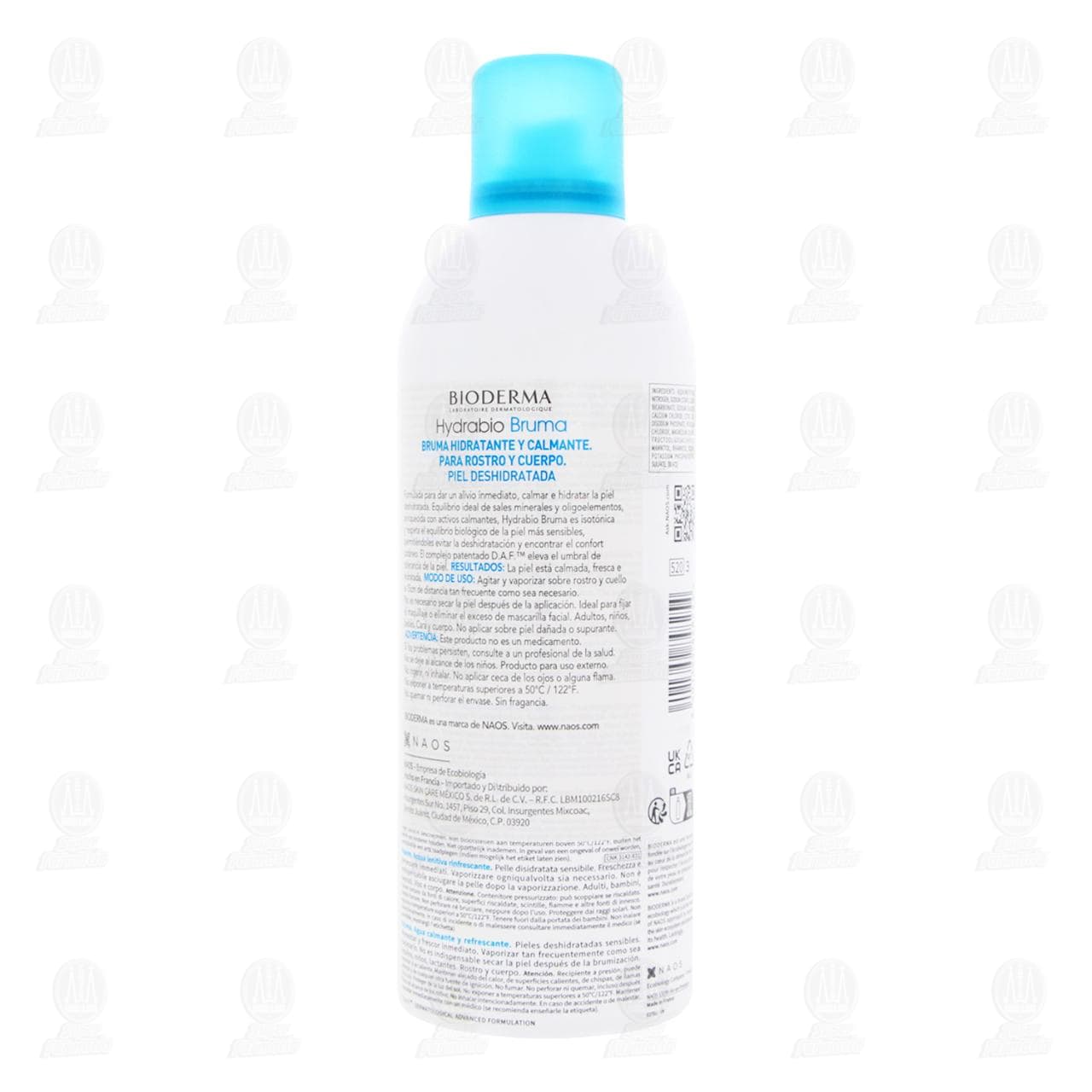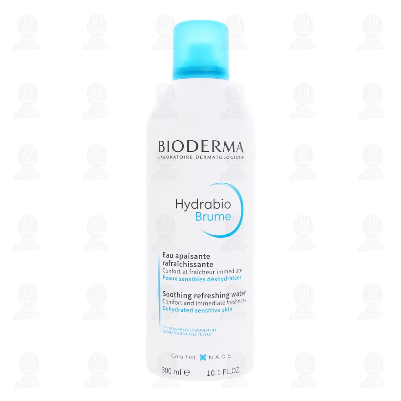 Bruma Hidratante y Calmante Bioderma Hydrabio Brume para rostro y cuerpo, formulada para dar un alivio inmediato que calma la sensación de tirantez. Envase con 300 mililitros.