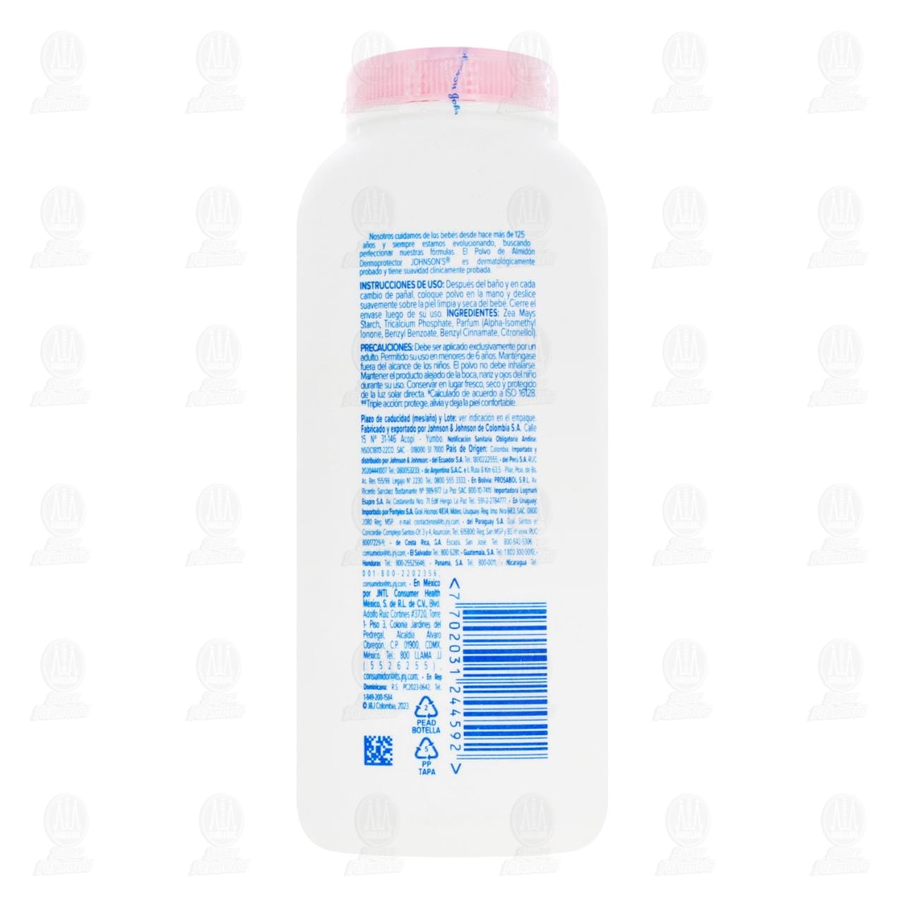 Talco Johnson's Baby Polvo de Almidón Dermoprotector Dermatológicamente Probado y tiene Suavidad Clínicamente Probada. Envase con 200 gramos.