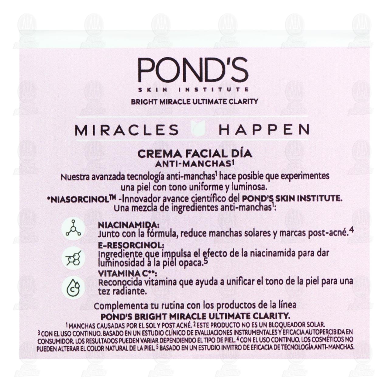 Crema Facial Pond's Día Bright Miracle Anti-Manchas FPS30. Contiene 50 gramos.