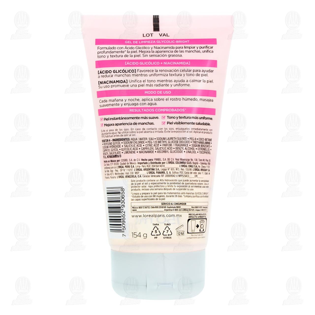 Gel de Limpieza L'Oréal Paris Glycolic Bright Anti-Manchas Complemento Rutina con Ácido glicólico más Niacinamida Purifica la Piel y Mejora la Apariencia de las Manchas. Contiene 150 mililitros.