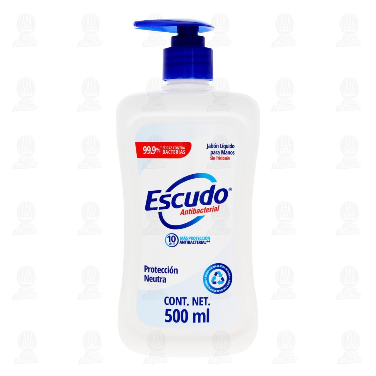 Jabón Líquido para Manos Escudo Antibacterial Protección Neutra Sin Triclosán. Envase con 500 mililitros.
