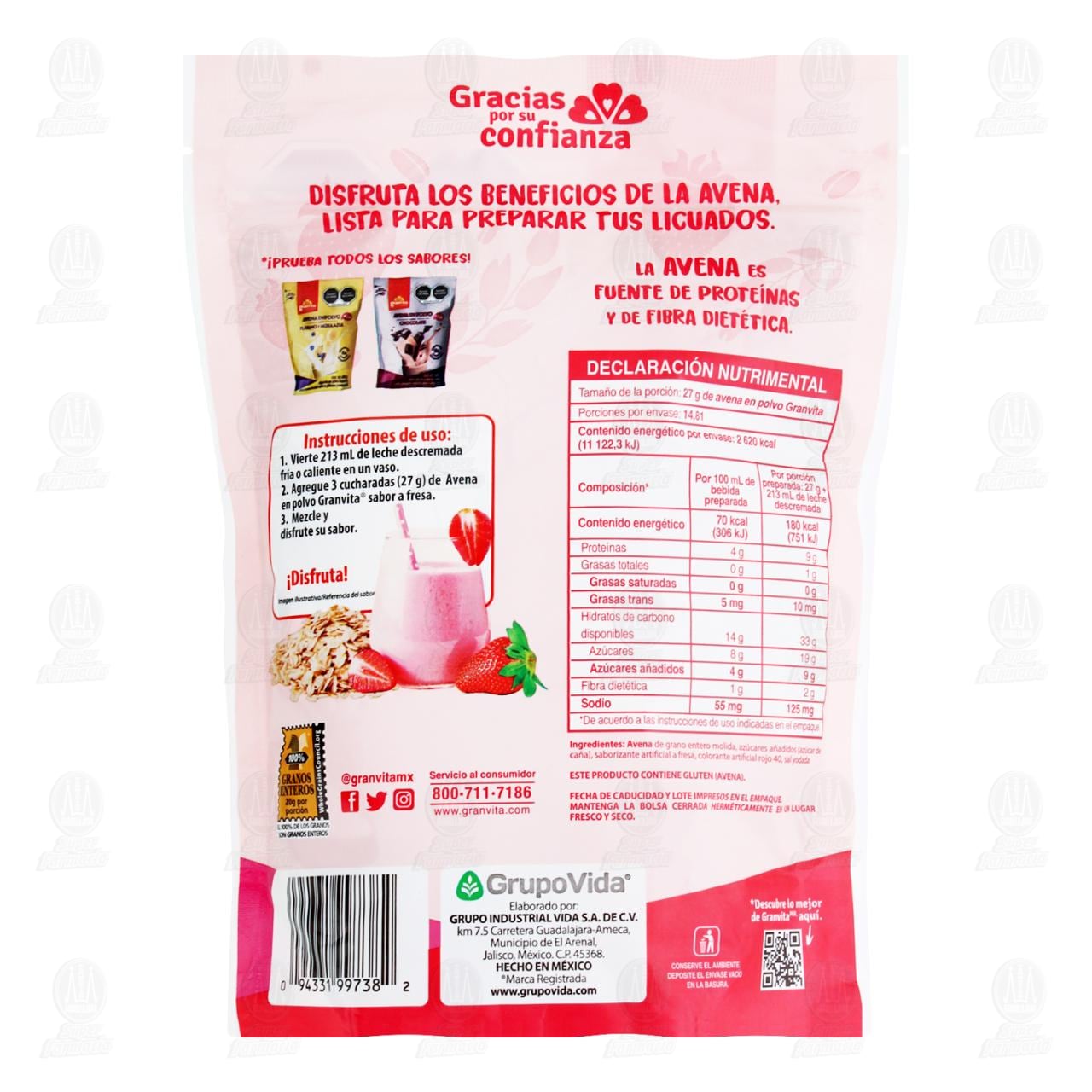 Avena Granvita en Polvo para Preparar Bebida Sabor a Fresa. Bolsa con 400 gramos.