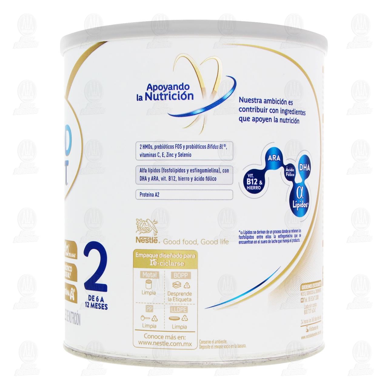 El uso de agua sin hervir, el de biberones no hervidos o la reconstitución incorrecta del producto pueden ocasionar una enfermedad al bebé. No guardes biberones sin terminar, desecha los residuos. Prepara solo un biberon cada vez. Dalo inmediatamente. Sigue las instrucciones exactamente. Recuerda tener siempre al bebé en brazos mientras lo alimentas. Un bebé que come solo puede atragantarse. La salud de tu hijo depende de que sigas cuidadosamente las instrucciones para la preparación y uso. No se debe administrar el contenido de este envase un mes después de abierto. Si este producto cambia de color, olor o apariencia debe desecharse. Úsala antes de la fecha de caducidad indicado por el envase. La fórmula no debe calentarse en horno de microondas. El almacenamiento prolongado y temperaturas excesivas deben evitarse. El uso de este producto debe hacerse bajo la orientación de un profesional de la salud (médico o nutriólogo). La leche materna es el mejor alimento para los bebés y deberá continuarse por el mayor tiempo posible. Consérvese en un lugar fresco y seco.