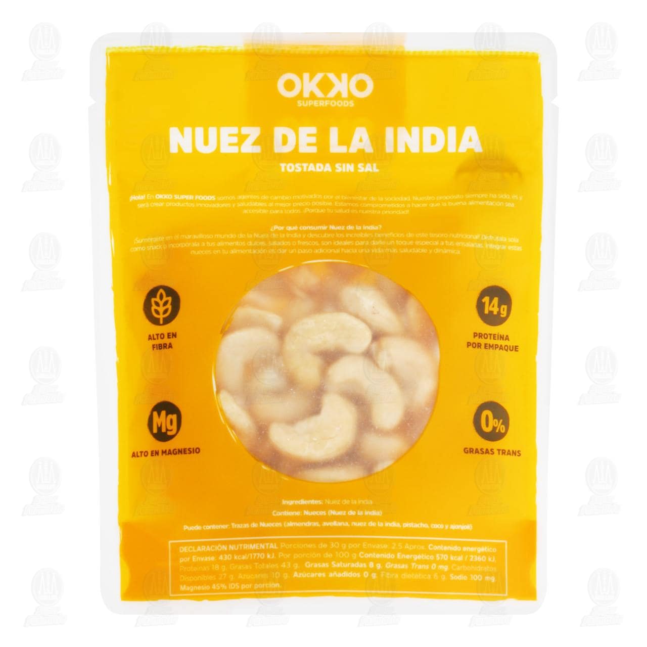 Nuez Okko Super Foods de la India Tostada Sin Sal. Bolsa con 75 gramos.