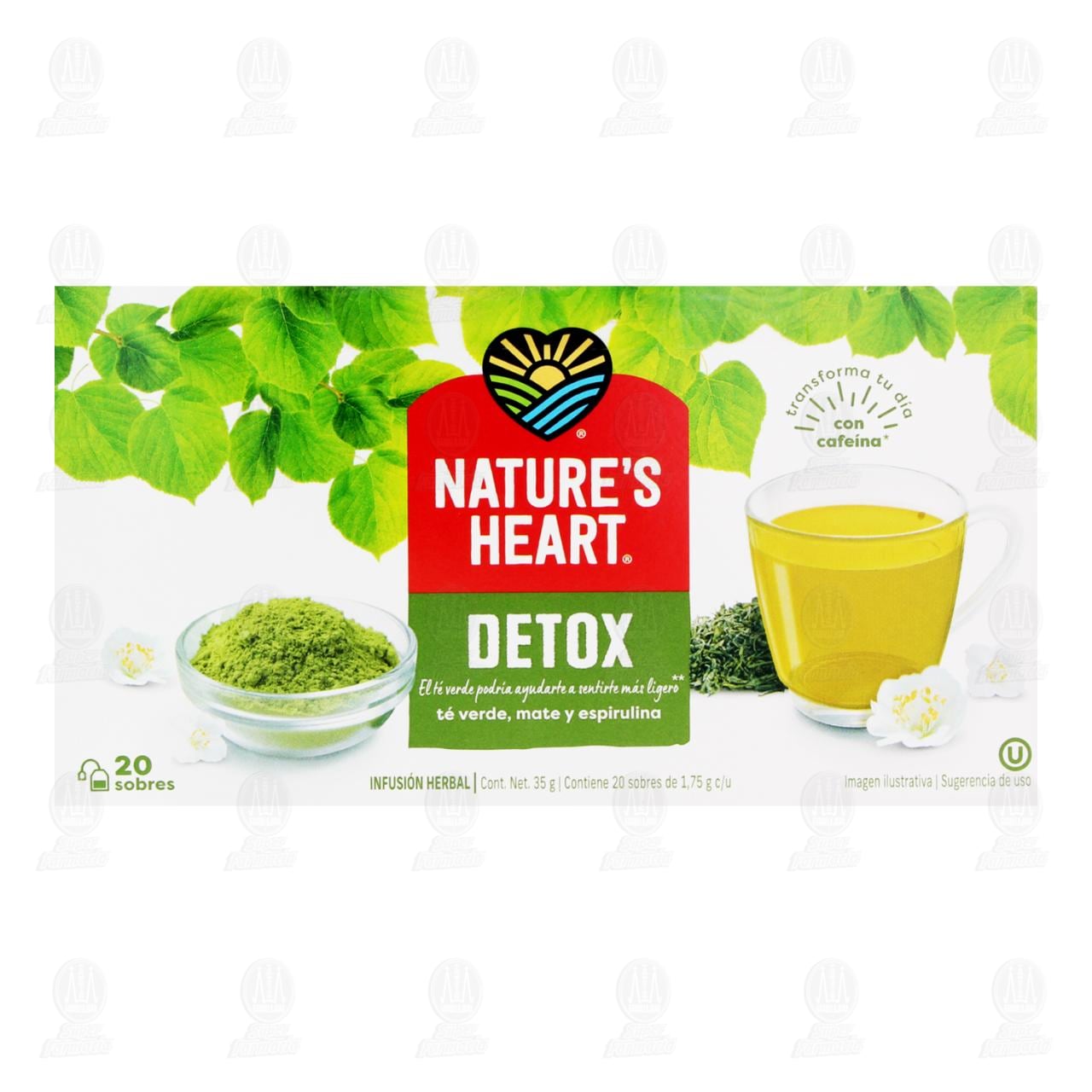 Té Nature's Heart Detox con té verde, mate y espirulina, El té verde podría ayudarte a sentirte más ligero. Caja de 35 gramos con 20 sobres de 1.75 gramos cada uno.