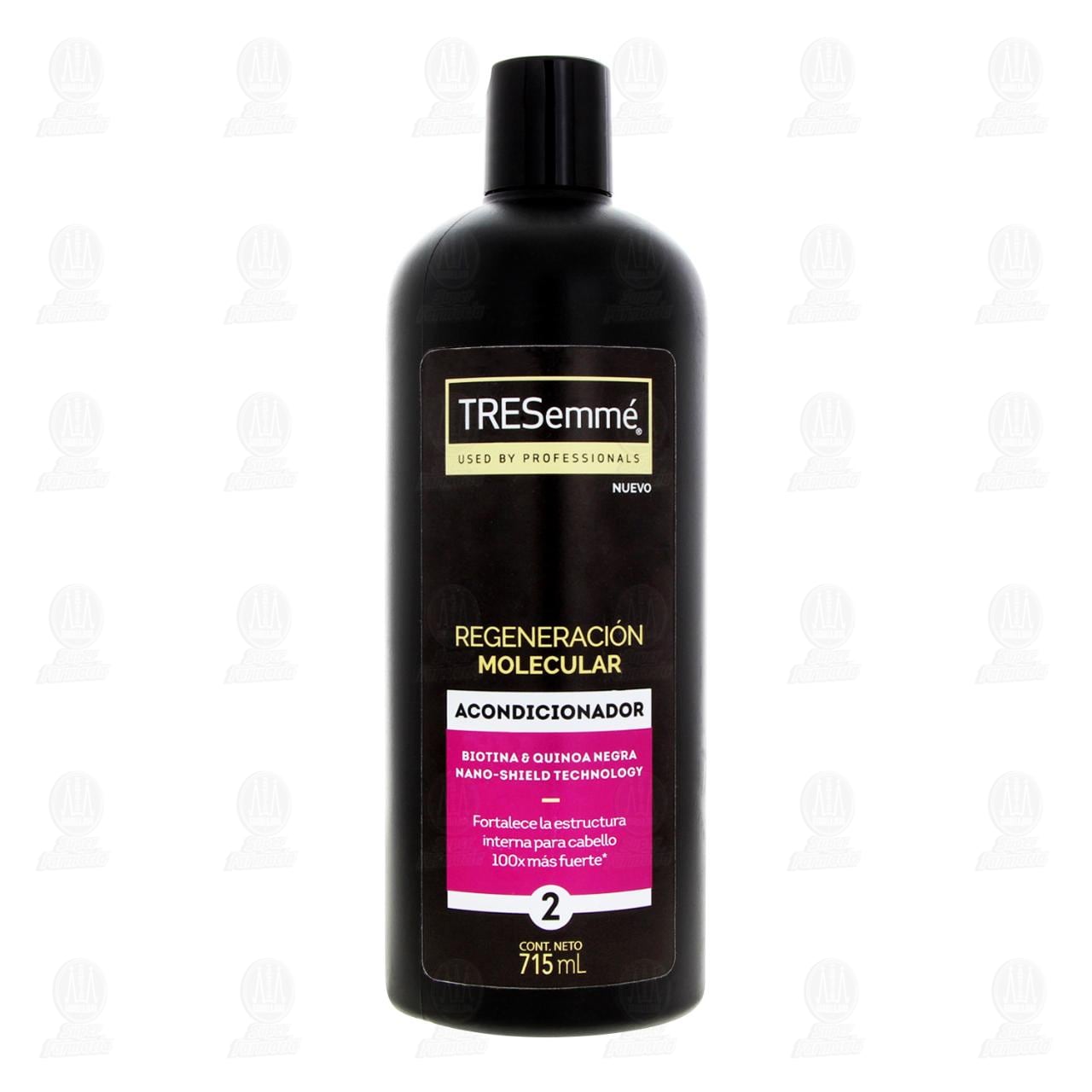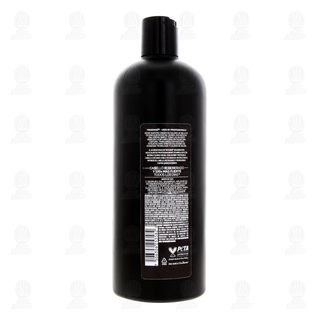 Acondicionador Tresemmé Regeneración Molecular con Biotina & Quinoa Negra, Fortalece la Estructura Interna para Cabello 100x más Fuerte. Envase con 715 mililitros.