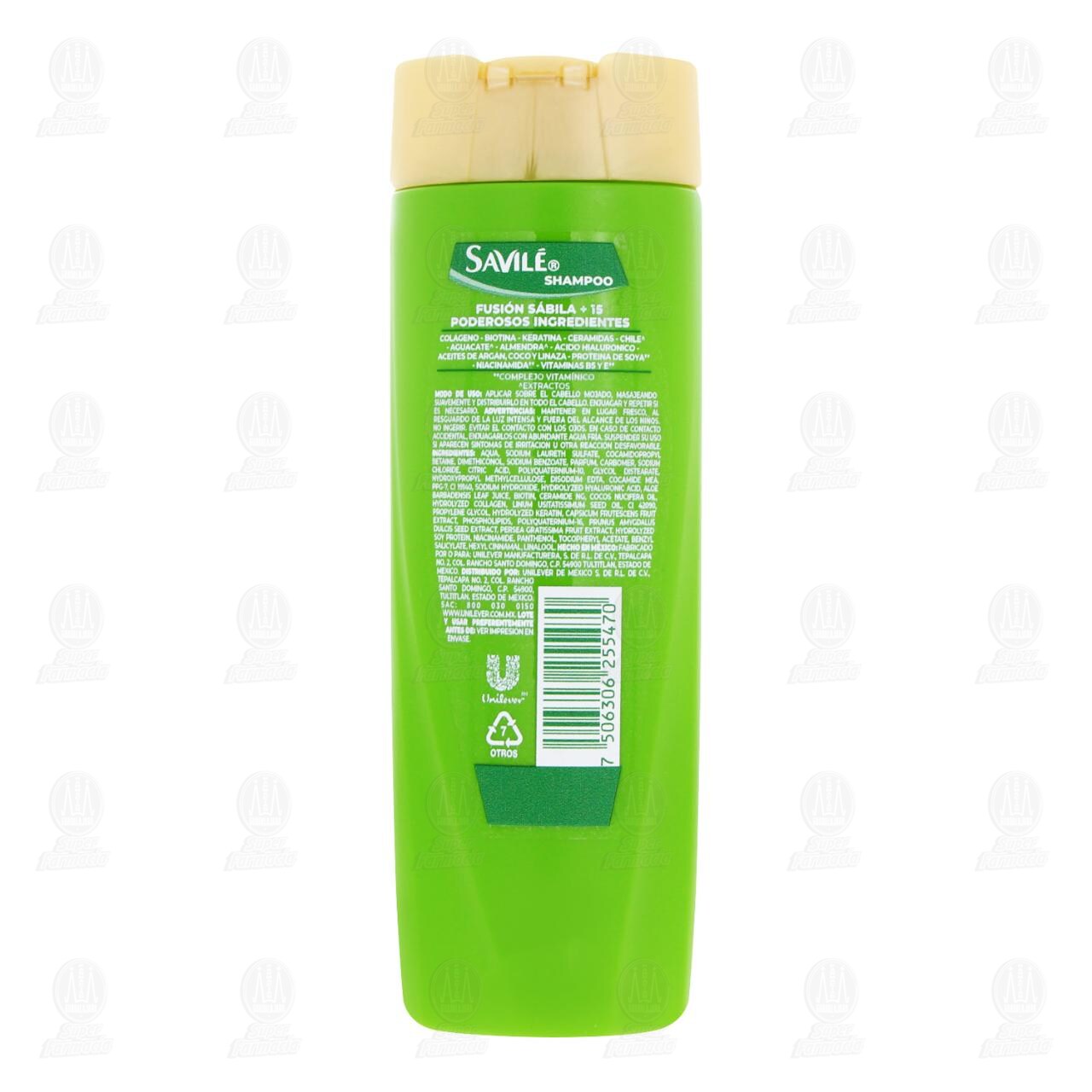 Shampoo Savilé Fusión Sábila +15 poderosos ingredientes. Envase con 180 mililitros.