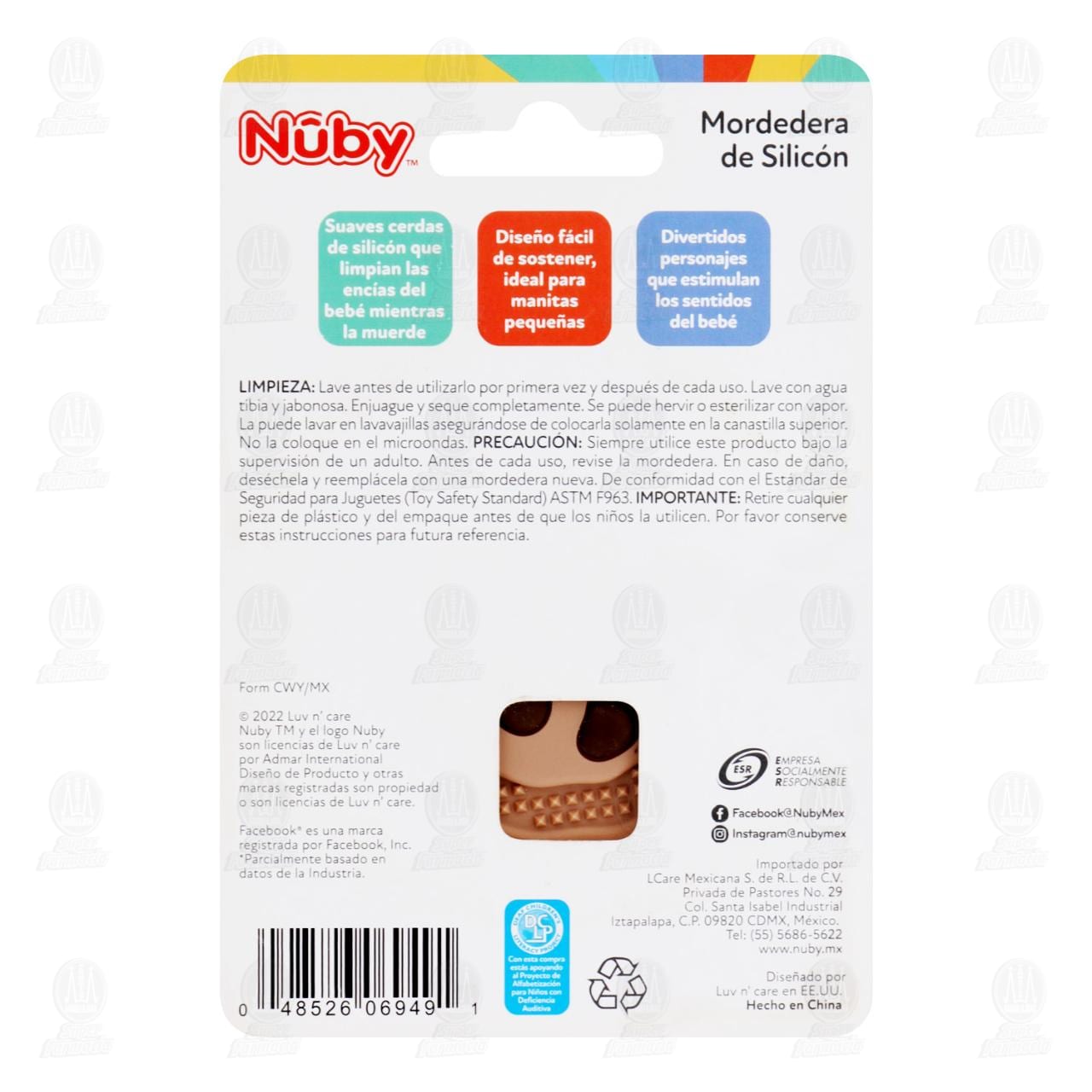 Mordedera Nuby galleta de silicón, Alivia y delicadamente limpia las encías con suaves cerdas de silicón que limpian las encías del bebé mientras la muerde. Contiene 1 pieza.