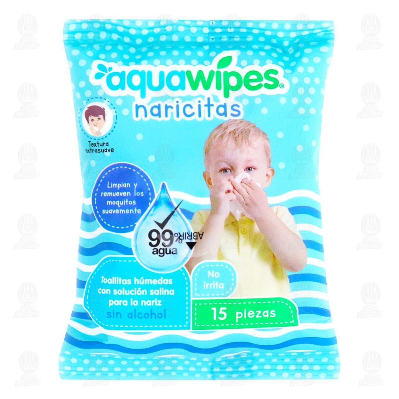 Toallitas Húmedas Aquawipes Naricitas con Solución Salina, 15 pzas. image number 0