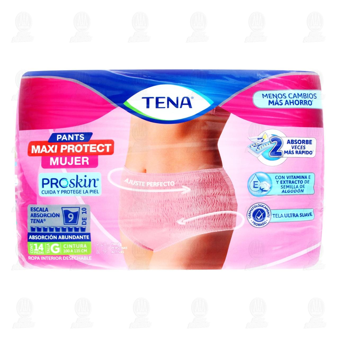Ropa Interior Desechable Tena Pants Mujer Maxi Protect talla grande con nivel de absorción 9 de 10, Materiales suaves y respirables con vitamina E y extracto de semilla de algodón. Paquete con 14 piezas.