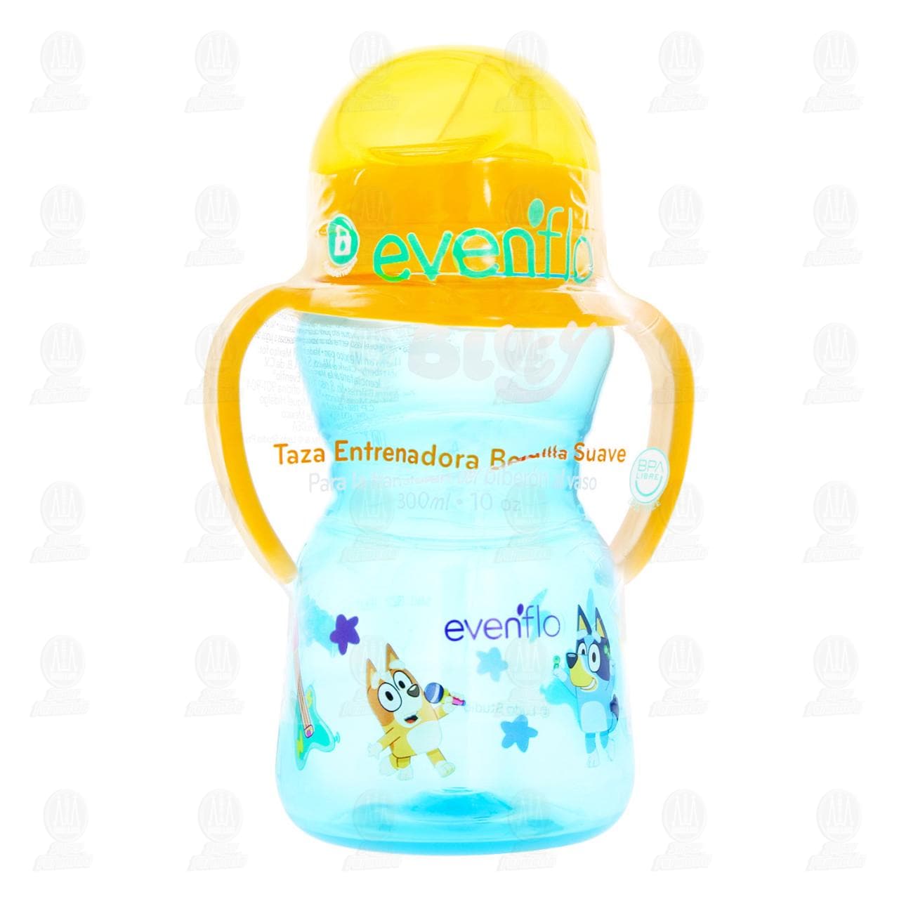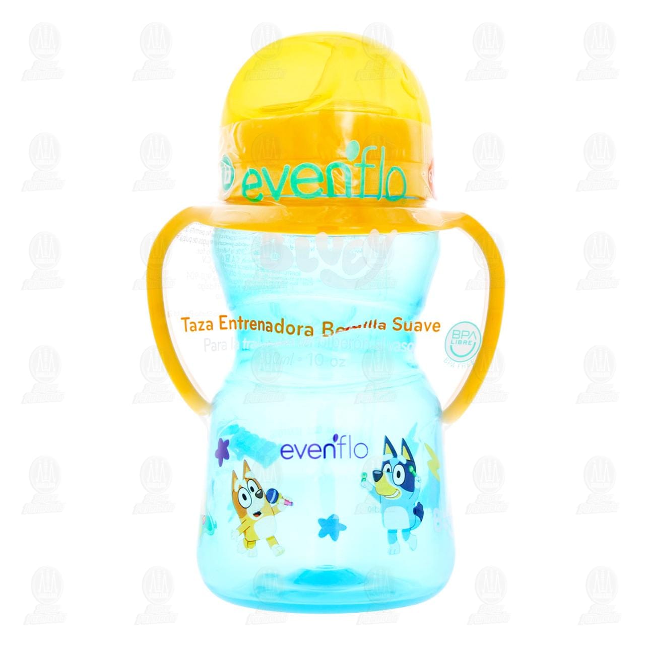 Taza entrenadora Evenflo Bluey con boquilla suave ideal para la transición del biberón al vaso. Contiene 1 pieza con capacidad de 300 mililitros.