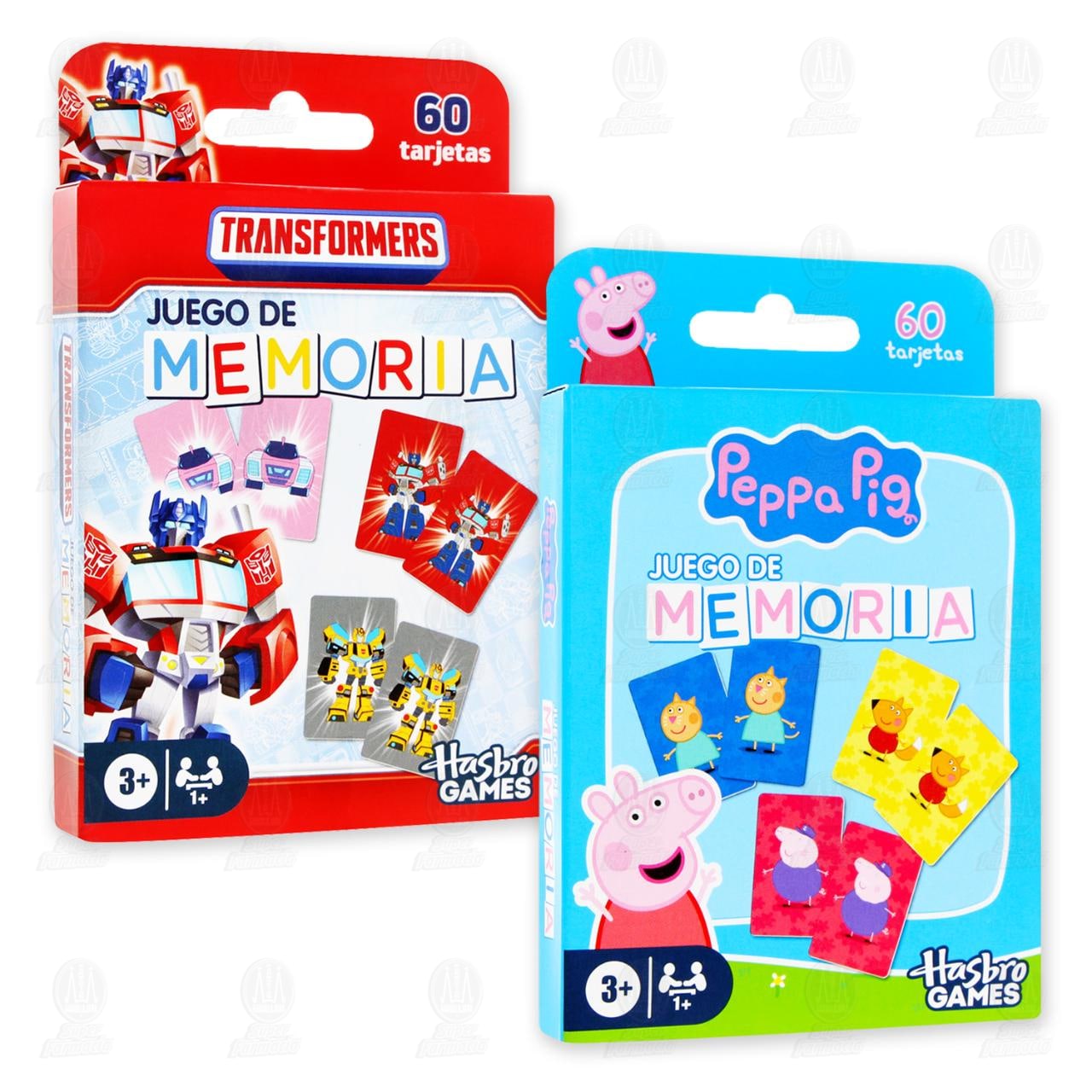 Juego de Memoria Hasbro Games de varios modelos con divertidas ilustraciones de personajes infantiles, Recomendado para mayores de 3 años. Contiene 1 juego con 60 tarjetas.