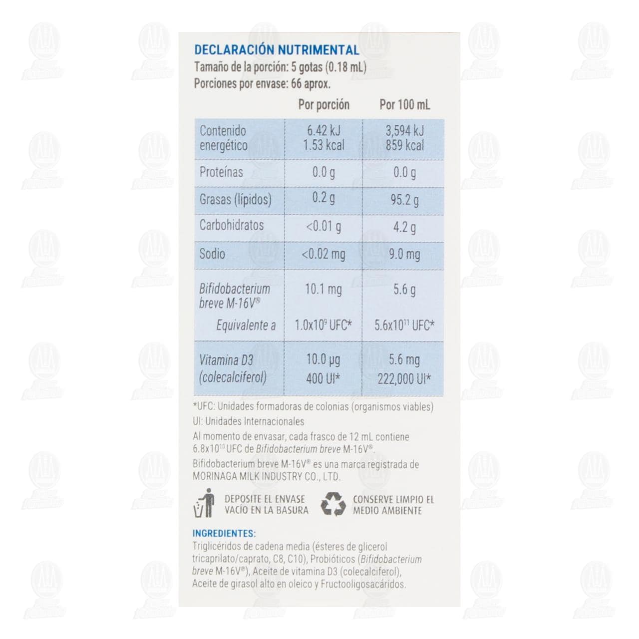 Suplemento Alimenticio Probiolog RN sin sabor 1.0 x 10 UFC (mil millones de UFC), Frasco gotero con 12 mililitros (a Base de probióticos, Bifidobacterium breve M-16V, Vitamina D3)