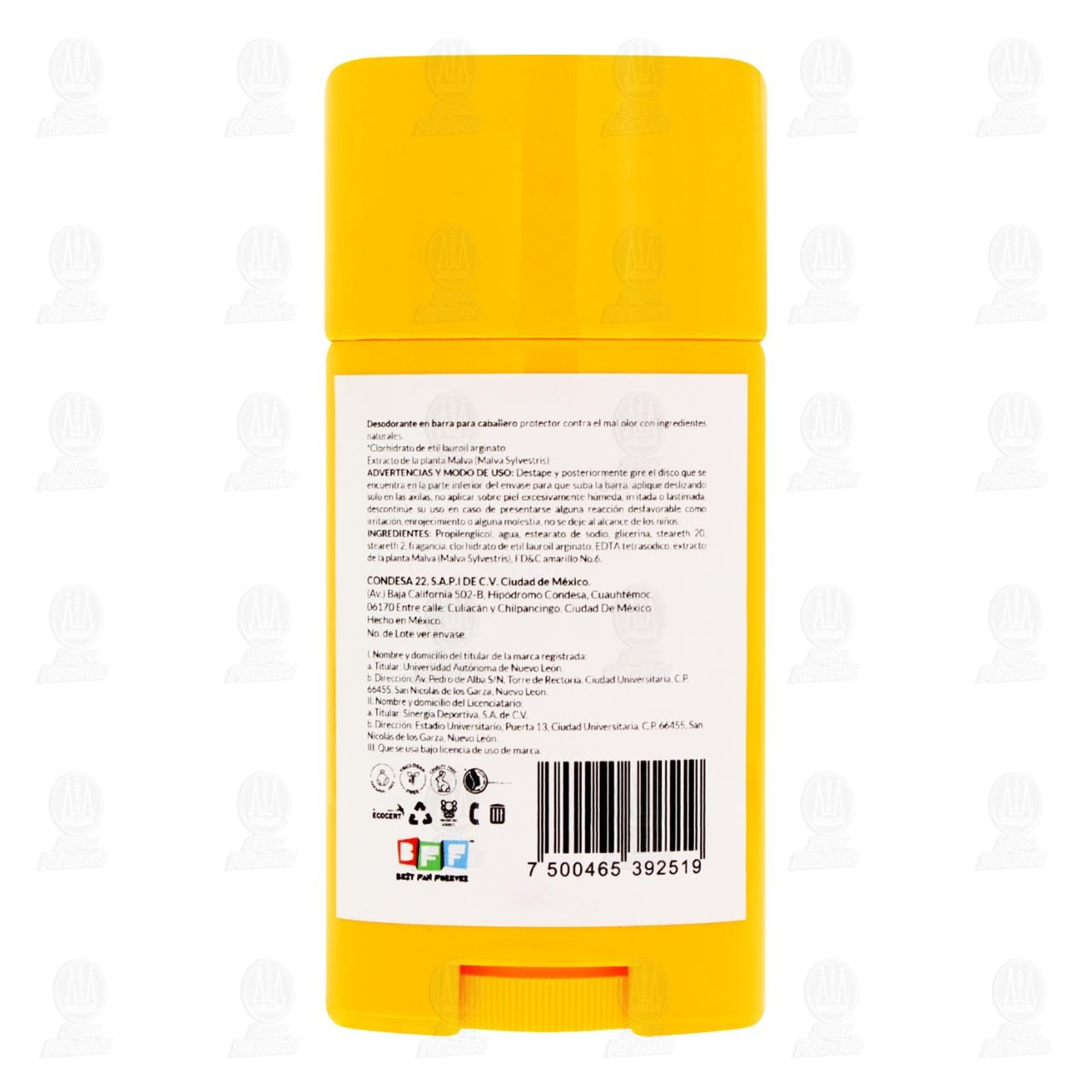 Desodorante en barra Tigres para caballero, Protector contra el mal olor con ingredientes naturales. Contiene 65 gramos.