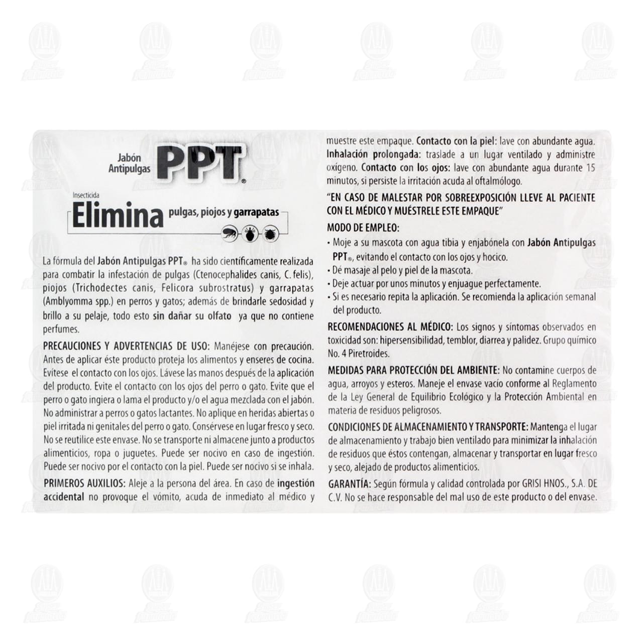 Pack Jabón Antipulgas PPT eliminador de pulgas, piojos y garrapatas en perros y gatos, además le brinda sedosidad y brillo a su pelaje. Contiene 2 piezas de 100 gramos cada una.