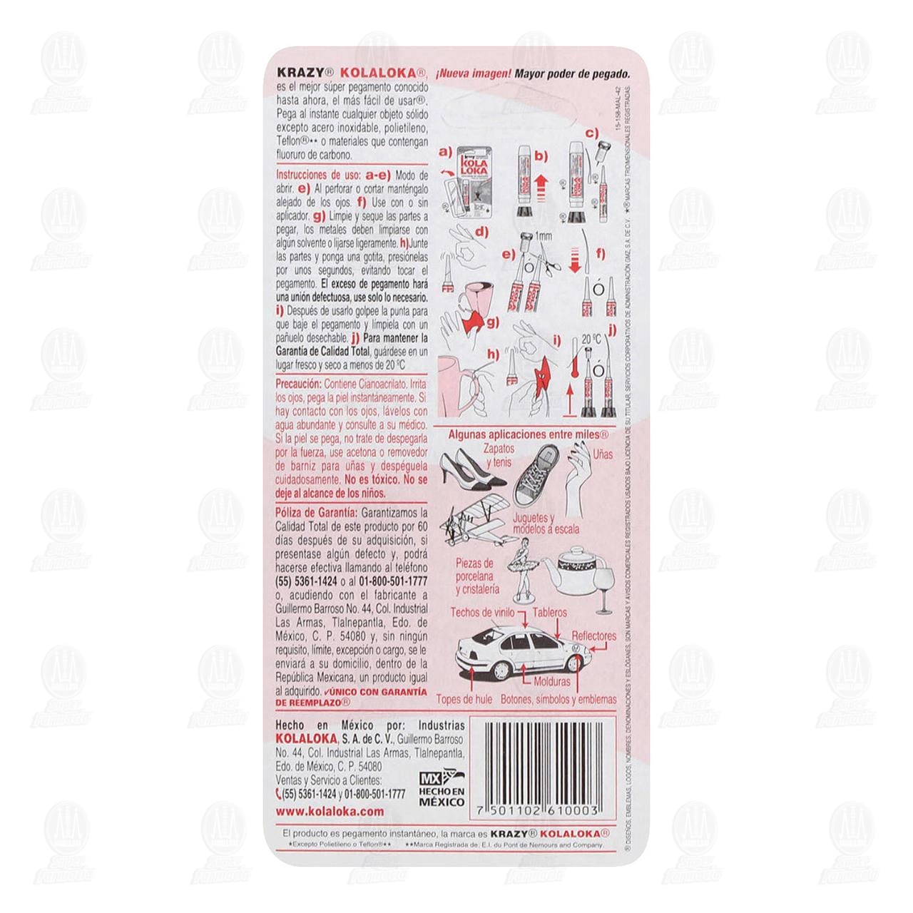 Pegamento instantáneo Kola Loka Krazy aplicador de precisión, pega en segundos, instantáneo fuerte y poderoso. Contiene 2 gramos.