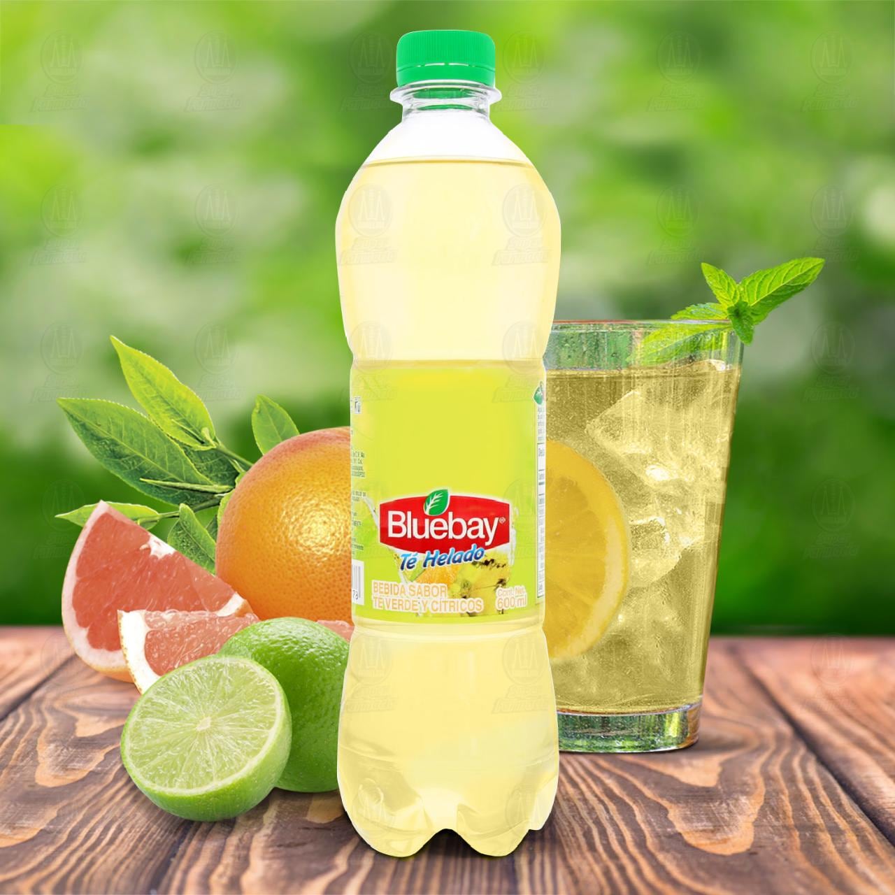 Bebida Bluebay Té Helado, sabor té verde y cítricos. Botella con 600 mililitros.