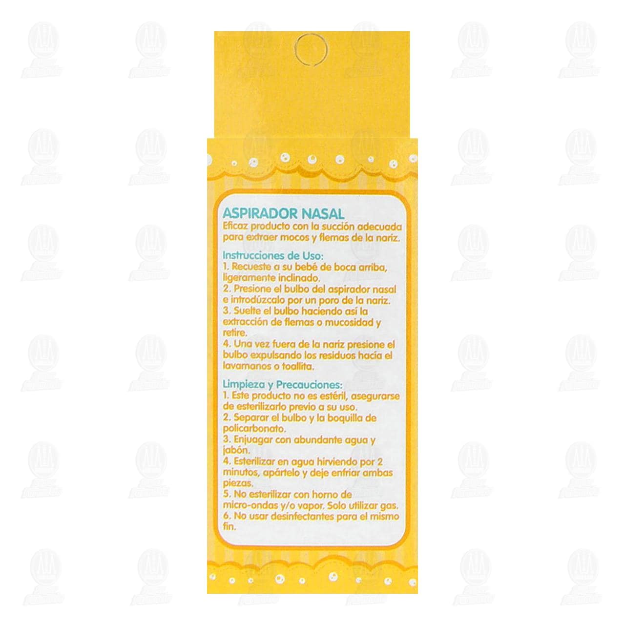 Aspirador nasal para bebé Smudy's para uso pediátrico, libre de BPA, suave al tacto, práctico e higiénico. Contiene 1 pieza.