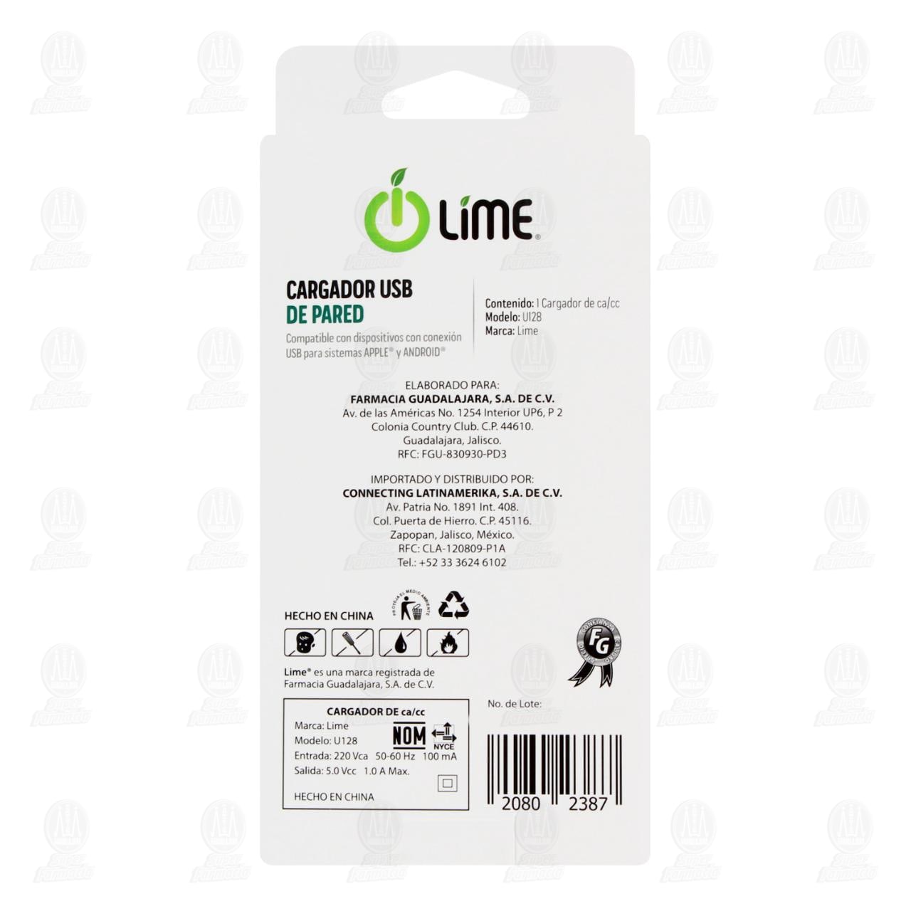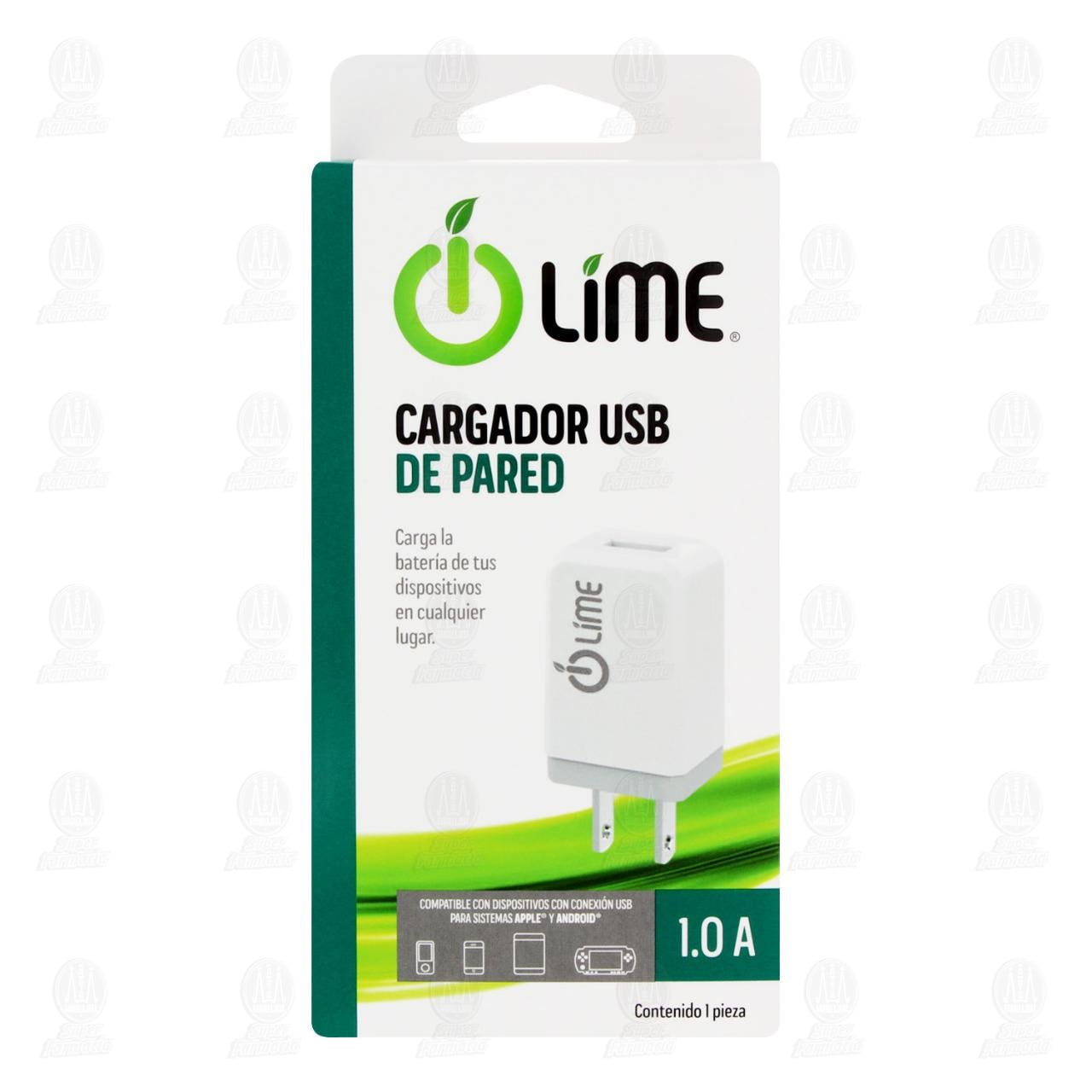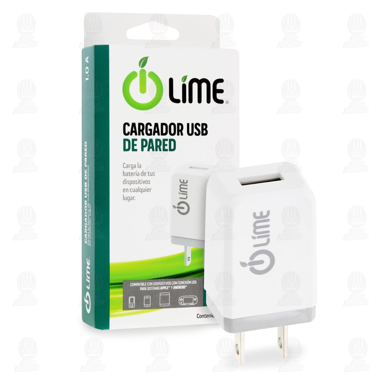 Cargador Lime USB de Pared. Contiene 1 pieza.