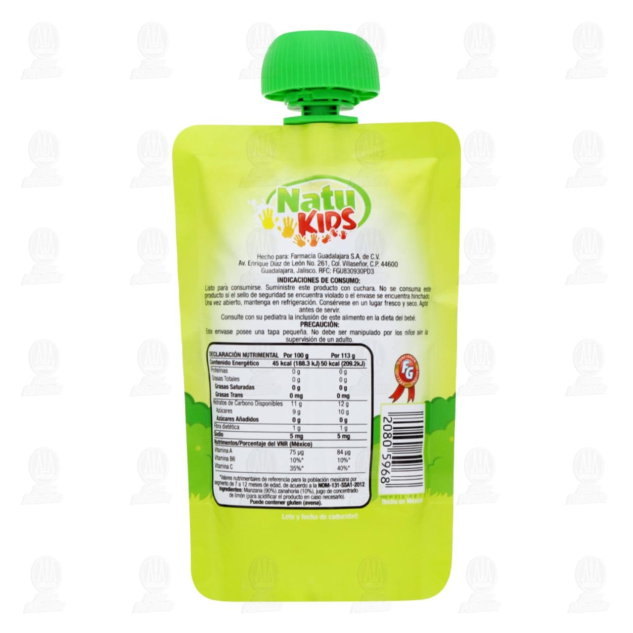 Alimento infantil Natu Kids, indicado para lactantes y niños de corta edad a partir de los 6 meses. Papilla de manzana y zanahoria con vitaminas A, B y C, Sin azúcar añadida. Contiene 113 gramos.