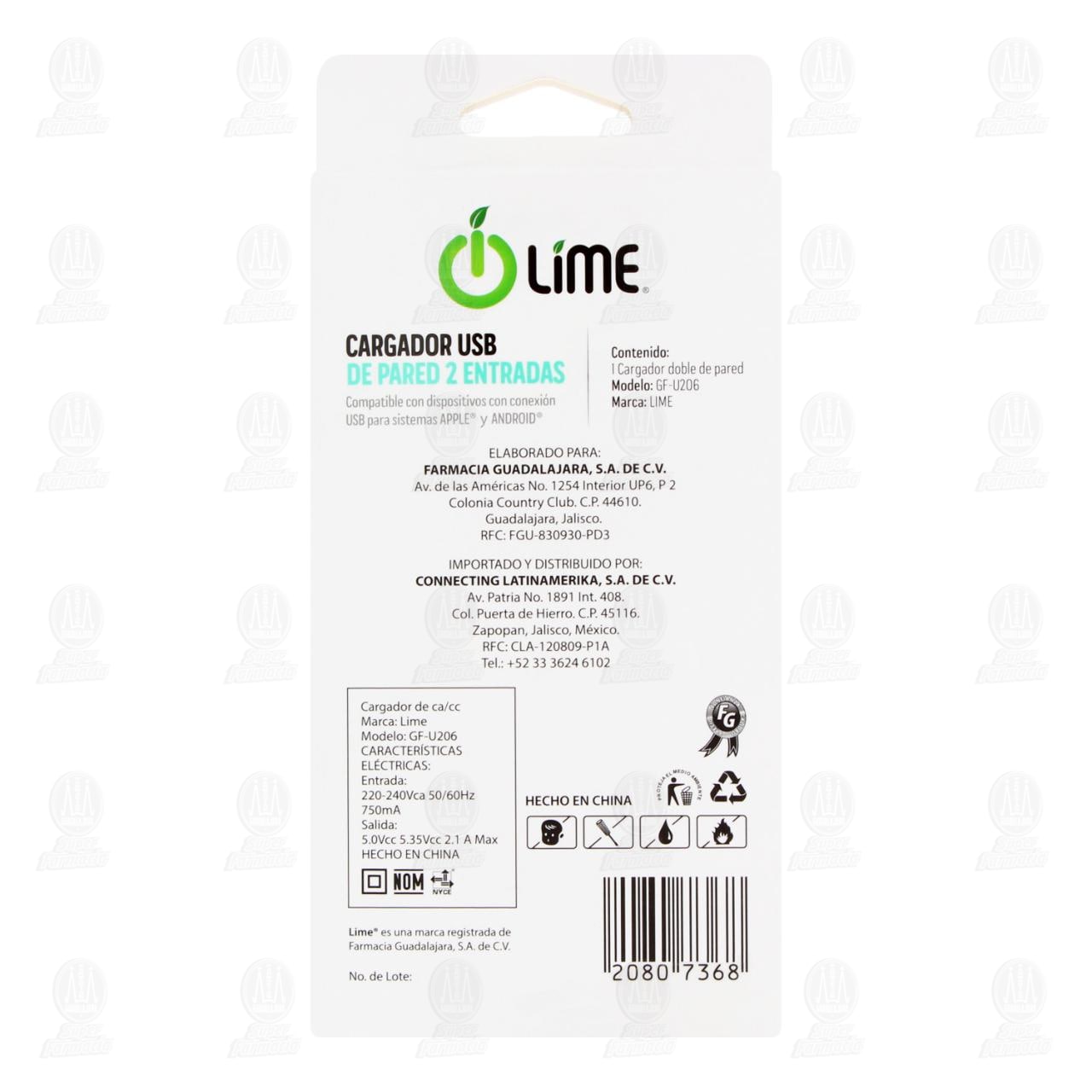 Cargador Lime USB de Pared 2 Entradas, 1 pz.
