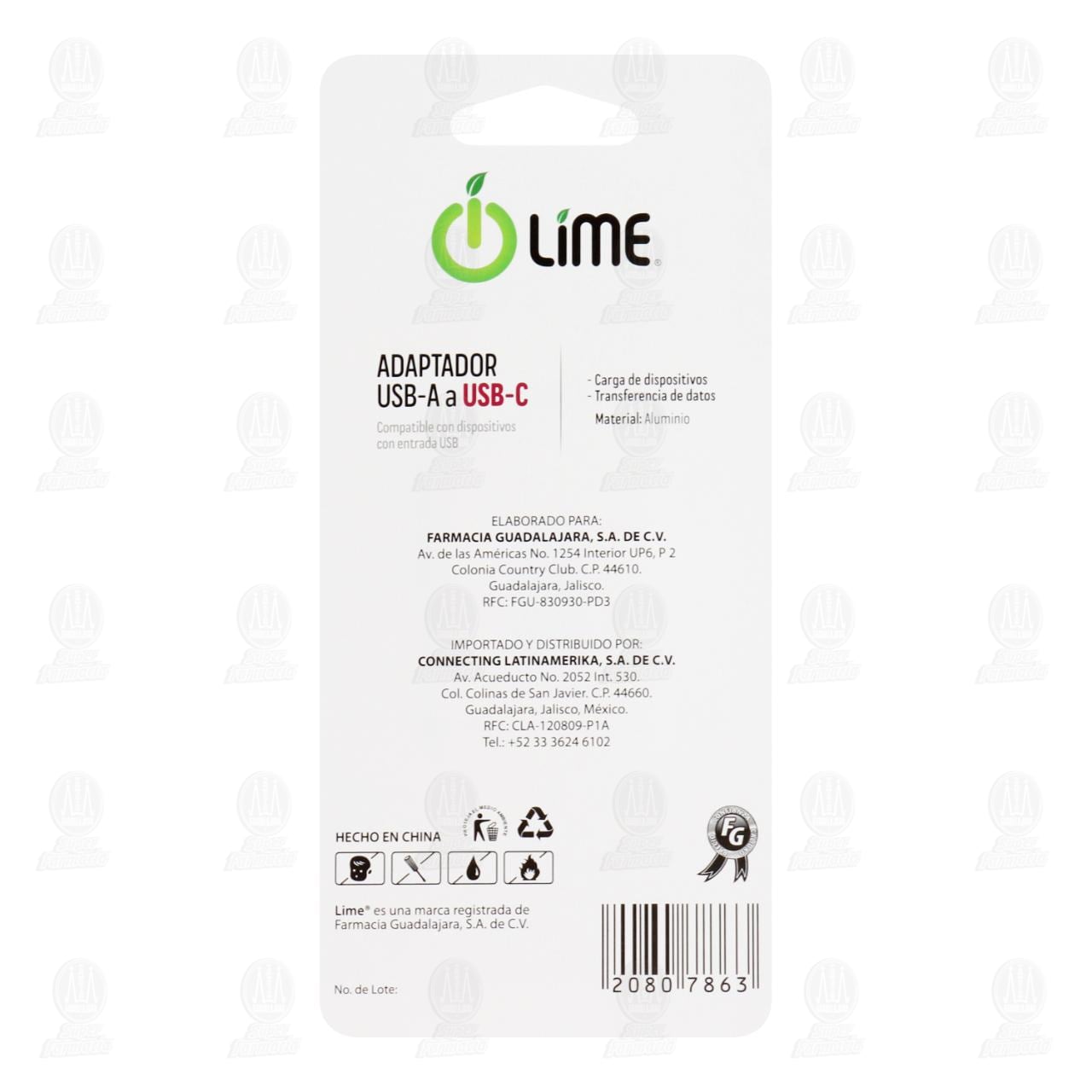 Adaptador Lime USB-A a USB-C Convierte tus dispositivos con entrada USB a Tipo C. Contiene 1 pieza.